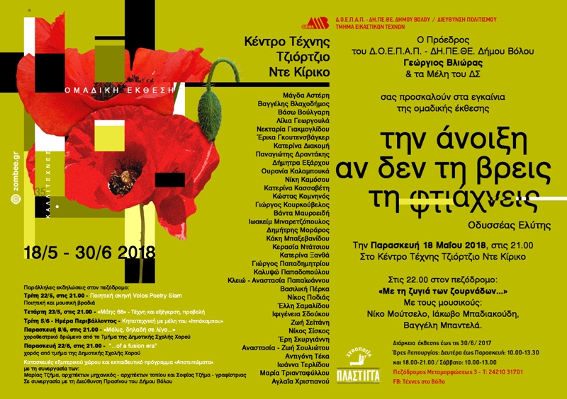 Σε συνεργασία με τη Διεύθυνση Πρασίνου του Δήμου Βόλου. Διάρκεια έκθεσης εως τις 30/6/2018.