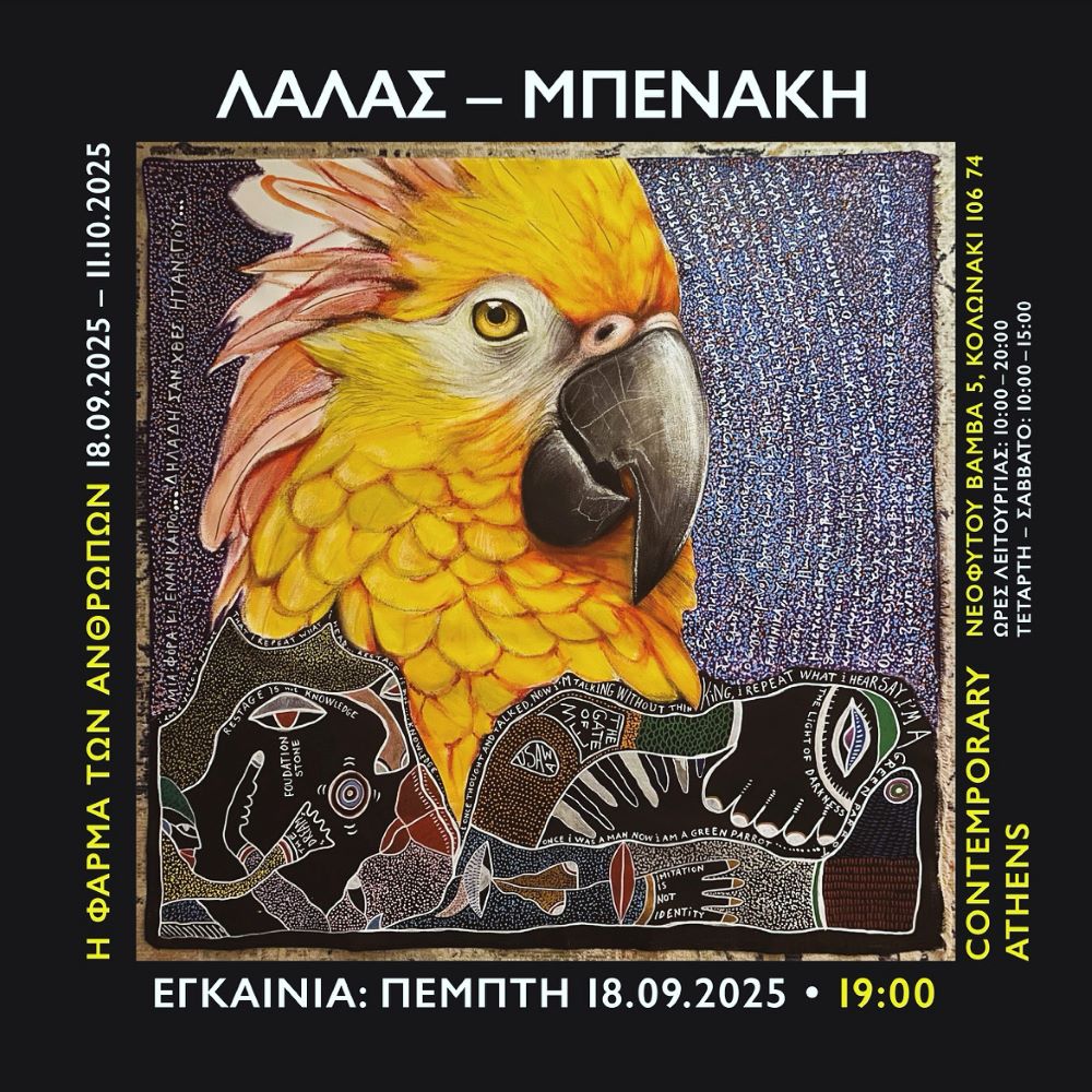 Κοινή δράση με κοινή συνύπαρξη σηματοδοτεί η έκθεση ζωγραφικής με τίτλο «Η φάρμα των Ανθρώπων» δύο διακεκριμένων δημιουργών, του Θανάση Λάλα και της Αλεξάνδρας Μπενάκη, που θα πραγματοποιηθεί στην Αθήνα στο Contemporary Athens (Νεοφύτου Βάμβα 5 στο Κολωνάκι) και θα εγκαινιαστεί αύριο Πέμπτη 18 Σεπτεμβρίου 2025 στις 7 το απόγευμα.