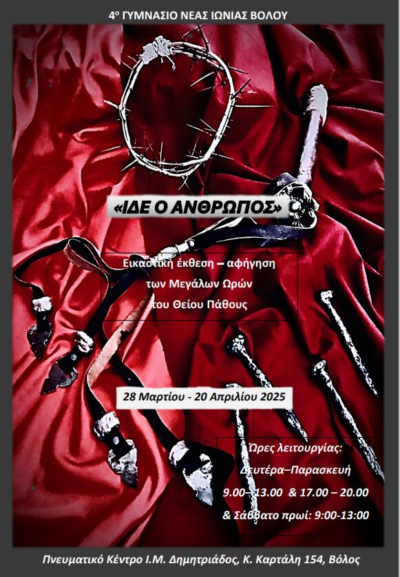 Στο πλαίσιο της εξωστρέφειας του 4ου Γυμνασίου Ν. Ιωνίας, της μουσειακής εκπαίδευσης και της πνευματικής καλλιέργειας ήθους και αισθητικής μέσω των εκφραστικών και παραστατικών τεχνών, το σχολείο, διοργανώνει μία εικαστική θέαση – «προσομοίωση» των Παθών του Χριστού όπου τα έργα συνδέονται με τις Ευαγγελικές περικοπές και «αφηγούνται» τις Μεγάλες Ώρες του Θείου Πάθους, με τον τίτλο «Ιδέ ο άνθρωπος».