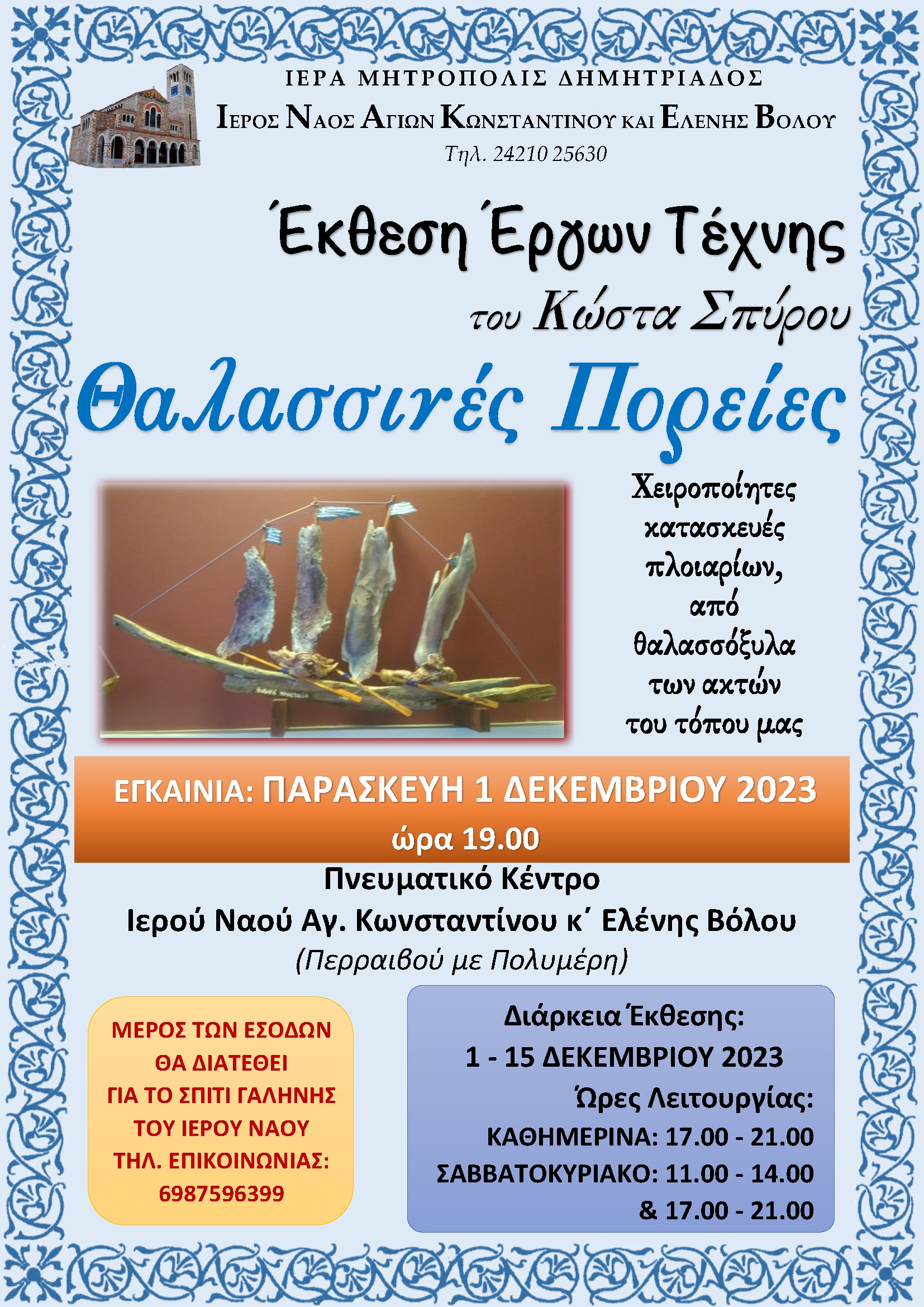 Σήμερα, Παρασκευή 1 Δεκεμβρίου, στις 19:00, ο Βολιώτης Δικηγόρος Κώστας Στεργίου ανοίγει για πρώτη φορά την πόρτα του Πνευματικού Κέντρου Βόλου για να παρουσιάσει την καλλιτεχνική του πλευρά, με τα έργα του. Πέρασαν μερικοί μήνες, από τον περασμένο Ιούνιο, όπου για πρώτη φορά εμφανίστηκε στο φιλότεχνο κοινό, στην παραλία του Βόλου, στο πλαίσιο της «Ναυτικής Εβδομάδας στον Βόλο 2023».
