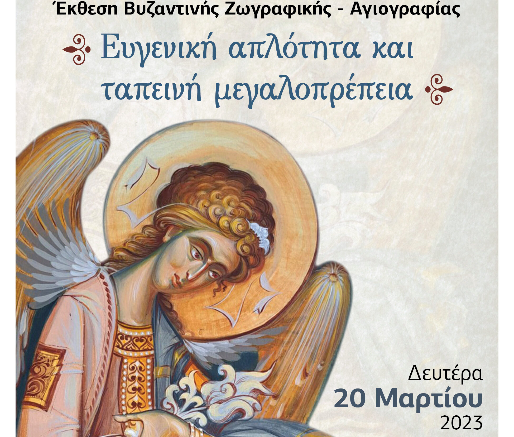 Τα εγκαίνια της Έκθεσης Βυζαντινής Ζωγραφικής – Αγιογραφίας, θα γίνουν την Δευτέρα 20 Μαρτίου 2023, και ώρα 19.00 στο πολιτιστικό Κέντρο Νέας Ιωνίας του Δήμου Βόλου και η Έκθεση θα διαρκέσει μέχρι την Τρίτη 28 Μαρτίου 2023.
