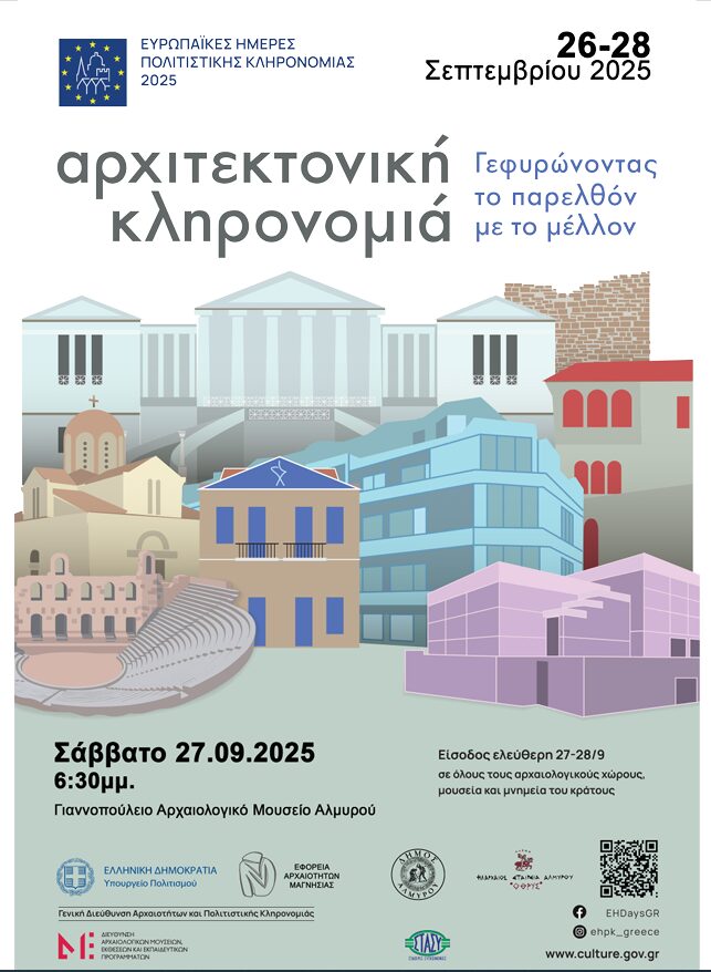 Όπως κάθε χρόνο, η Εφορεία Αρχαιοτήτων Μαγνησίας συμμετέχει και φέτος στον εορτασμό των Ευρωπαϊκών Ημερών Πολιτιστικής Κληρονομιάς γι’ αυτό και η είσοδος θα είναι ελεύθερη σε όλους τους αρχαιολογικούς χώρους και τα μουσεία του νομού στις 27-28 Σεπτεμβρίου 2025.