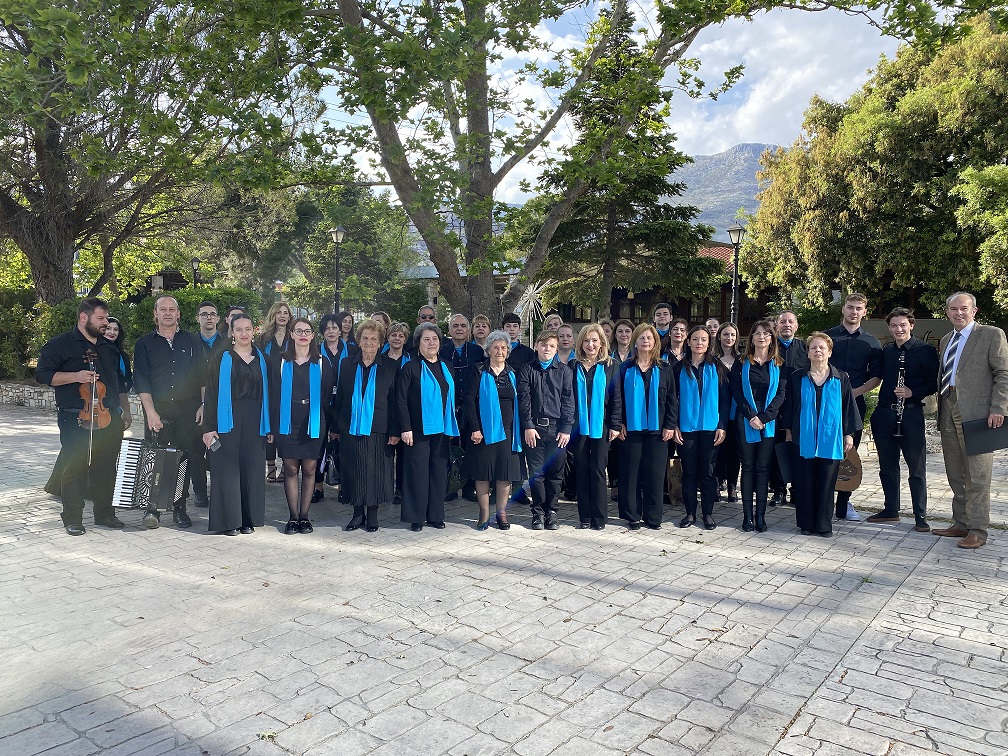 Η χορωδία υπό τη διεύθυνση του μαέστρου Δημήτρη Τραγουδάρα αποτελούνταν από τους : Ασπασία Τσιούμαρη ,Μαρία Παπαγεωργίου – Τόρη , Αγλαία Τραγουδάρα , Μαριλένα Αγριδοπούλου , Φιλίτσα Ασπρούδη , Δημήτρη Βαβαράπη , Αντώνη Βαβάτσικο , Στέμη Βαρελοπούλου , Αμαλία Βελίτσου , Κωνσταντίνα Γάτου , Εύη Γώγου , Μαρία Γώγου , Κυριακή Αθ. Δημητριάδη , Κυριακή Φ. Δημητριάδη , Ελένη Διχτά , Ευτυχία Καλαμίδα , Στέφανο Καλαμίδα , Άννα Κατούνη , Αθηνά Κουτσιμπάνα , Ευαγγελία Κουτσιμπάνα , Αγγελική Μανώλη , Σάββα Παπαδόπουλο , Δέσποινα Παπακωνσταντίνου , Παναγιώτη Πατσιάγγουρα , Έφη Σαμαρά , Εύη Σαραντούλη , Αναστασία Σιάνου , Μαρίνα Σιούρα , Χρήστο Στάθη , Γεωργία Σταυρογιάννη , Ελένη Τραγουδάρα , Στέλιο Τραγουδάρα , Μαρήλια Τσατσανάκου , Μαρία Χρυσάνθη , Νικολέτα Τσιούμαρη .