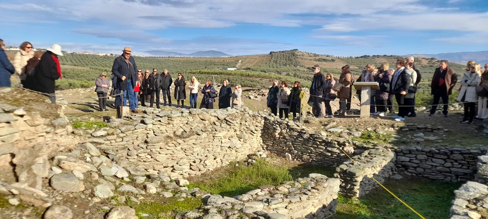 Όπως σημειώνεται από τον Σύνδεσμο, οι εκδρομείς πρώτα μετέβησαν στον αρχαιολογικό χώρο στο Σέσκλο, όπου βρίσκεται ένας από τους αρχαιότατους νεολιθικούς οικισμούς της Θεσσαλίας, ο οποίος κατοικήθηκε για πρώτη φορά στην αρχή της 7ης χιλιετίας (6800 π.Χ.) και ερημώθηκε λίγο πριν το τέλος της 5ης χιλιετίας π.Χ. (4.400 π.Χ.). Εκεί είχαν άριστη ενημέρωση από τον αρχαιολόγο κ. Λεωνίδα Χατζηαγγελάκη, φίλο και συνεργάτη του Φ.Ι.ΛΟ.Σ.