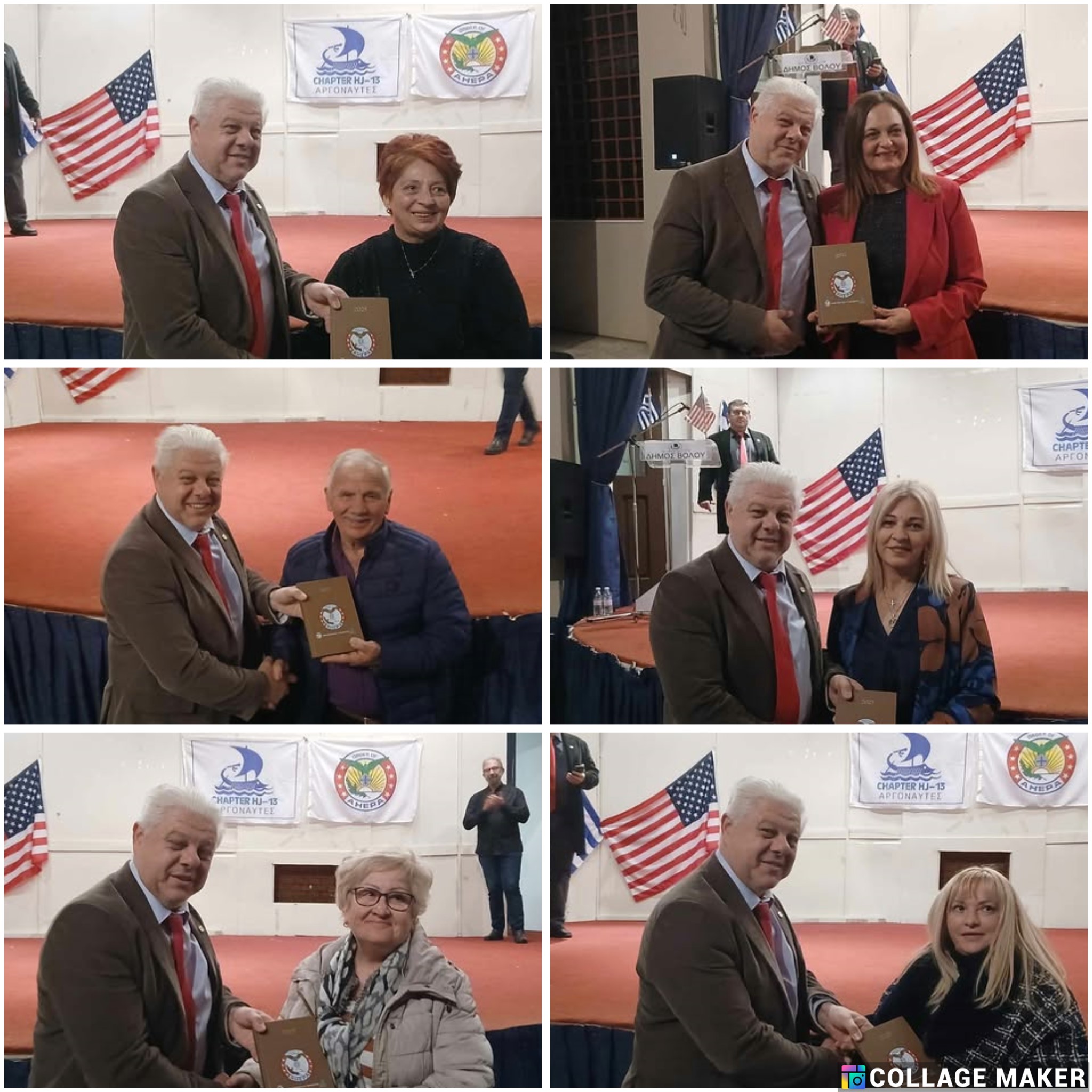 Στην αρχή της εκδήλωσης, ο πρόεδρος του τμήματος AHEPA HJ13 Αργοναύτες Βόλου, κ. Βασίλης Πανουτσόπουλος, παρουσίασε το τμήμα και την ιστορία του, τονίζοντας τη σπουδαιότητα της συνεχιζόμενης δράσης του στην περιοχή. Στη συνέχεια, διανεμήθηκαν επετειακά ημερολόγια του τμήματος στους: