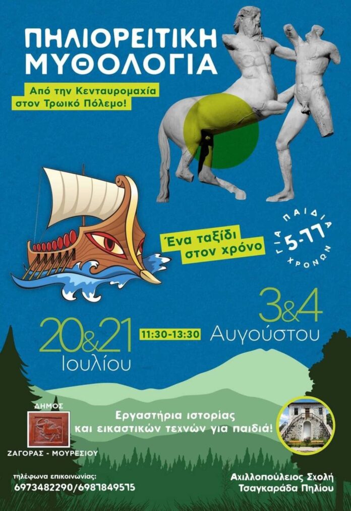 Ο Δήμος Ζαγοράς Μουρεσίου διοργανώνει καλοκαιρινά εργαστήρια ιστορίας και εικαστικών τεχνών για παιδιά από 5 έως 11 ετών, με θέμα Πηλιορείτικη Μυθολογία: Από την Κενταυρομαχία στον Τρωικό Πόλεμο.