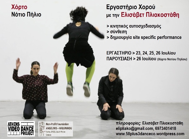 Το Athens Video Dance Project φιλοξενείται για πρώτη φορά από τον πολιτιστικό οργανισμό “Γ. Αγγελίνης-Π. Χατζηνίκου” στο Χόρτο Νοτίου Πηλίου και πραγματοποιεί ένα εργαστήριο κινητικού αυτοσχεδιασμού, σύνθεσης και δημιουργίας site specific performance με την Ελισάβετ Πλιακοστάθη. Το Athens Video Dance Project ξεκίνησε το 2010 στην Αθήνα με σκοπό να προωθήσει την τέχνη του χορού και του Videodance στην Ελλάδα μέσα από εκπαιδευτικά και καλλιτεχνικά προγράμματα και παραγωγές διαδραστικών παραστάσεων και videodance έργων. Το Κοινωφελές Ίδρυμα “Γ. Αγγελίνης-Π. Χατζηνίκου” δραστηριοποιείται πάνω από 30 χρόνια στο Χόρτο με σκοπό την ανάπτυξη της περιοχής μέσω της εκπαίδευσης και του πολιτισμού, διοργανώνοντας υψηλού επιπέδου καλλιτεχνικά και εκπαιδευτικά προγράμματα στο υπαίθριο θέατρο του Ιδρύματος.