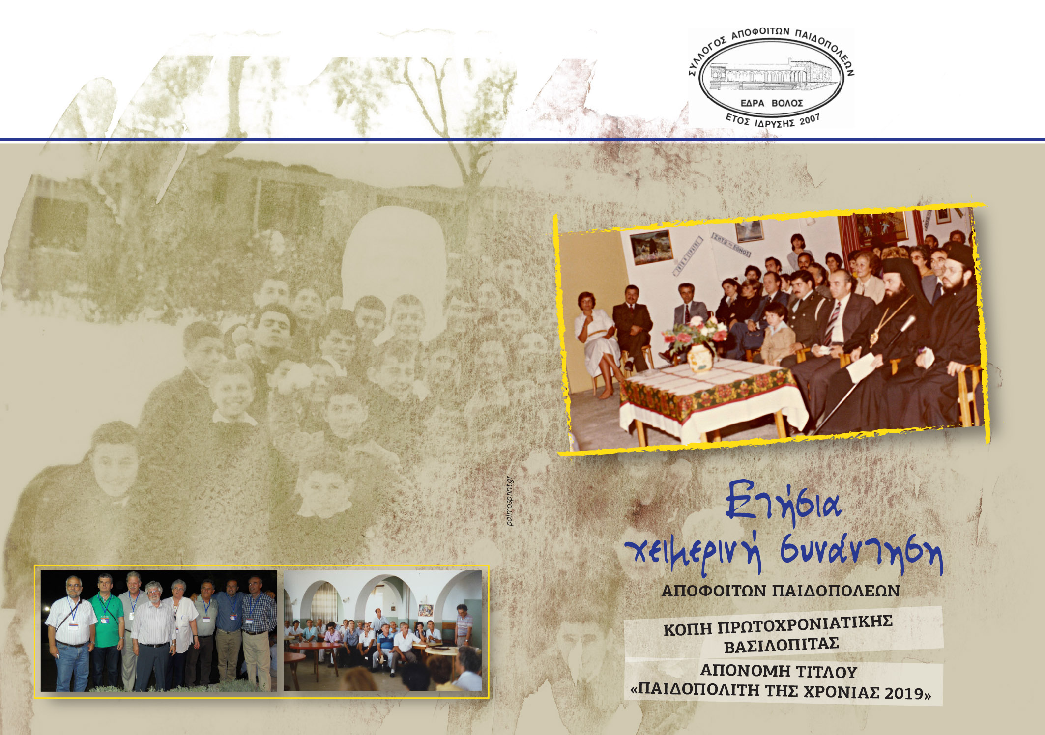 Στην αρχή κάθε χρόνου, στο πλαίσιο της Ετήσιας Χειμερινής Συνάντησης, έχει καθιερωθεί και πραγματοποιείται η τελετή της κοπής της παραδοσιακής βασιλόπιτας, με ιδιαίτερα σημαντικό γεγονός και ευλογία για εφετινή διοργάνωση, την παρουσία του Σεβ. Μητροπολίτη Δημητριάδος και Αλμυρού κυρίου Ιγνατίου, ο οποίος και θα ευλογήσει την βασιλόπιτα και τους παριστάμενους Αποφοίτους από πολλά μέρη της Ελλάδας.