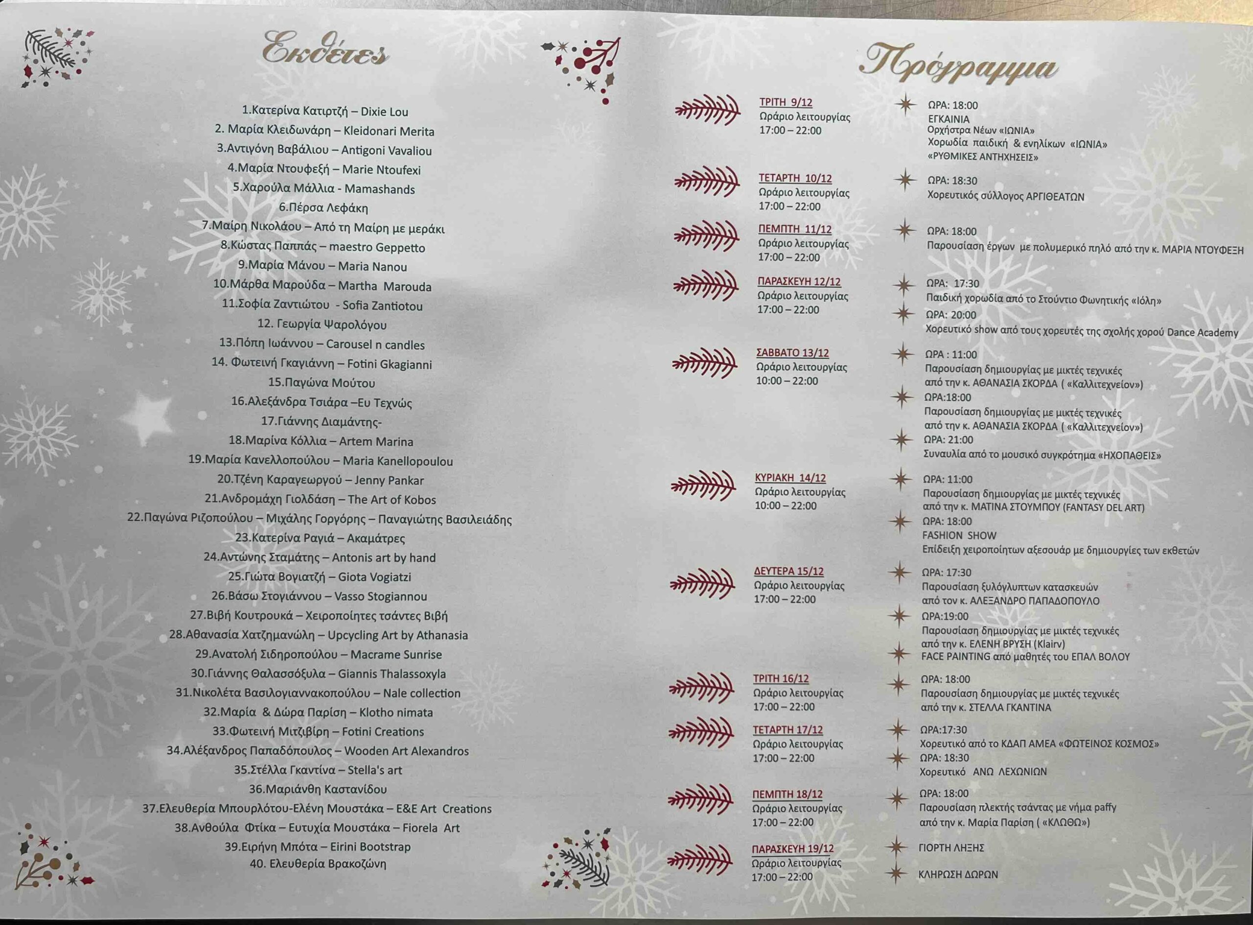 Το Φεστιβάλ θα στηρίξει φέτος την Πανελλήνια Φιλανθρωπική Δράση «Θαύμα» και την ΕΛΕΠΑΠ, ενώ οι επισκέπτες θα μπορούν να θαυμάσουν αλλά και να αποκτήσουν χειροποίητες δημιουργίες, όπως κοσμήματα, τσάντες, διακοσμητικά, έργα τέχνης κ.α., ενώ ταυτόχρονα θα λαμβάνουν χώρα και πολλές δράσεις, χορευτικά δρώμενα και διαφόρων ειδών εργαστήρια. Στους χορηγούς επικοινωνίας: Ράδιο ΕΝΑ, Εφημερίδα ΜΑΓΝΗΣΙΑ, Magnesianews.gr.