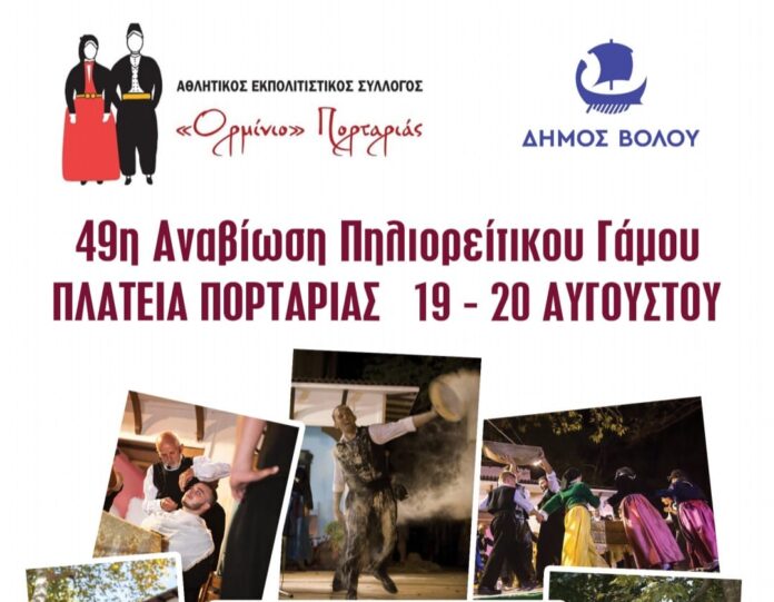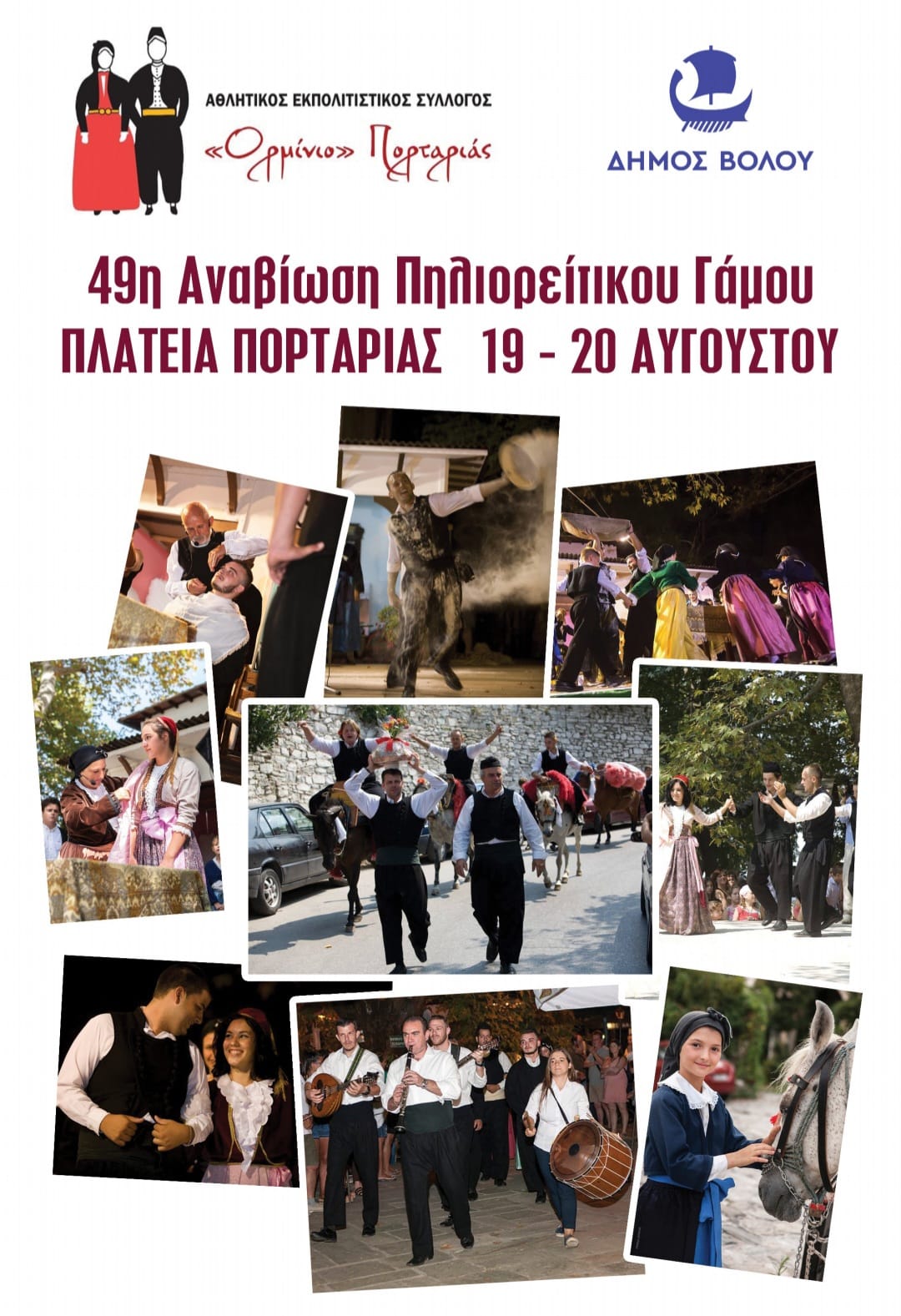 Η 49η αναβίωση του Πηλιορείτικου γάμου θα πραγματοποιηθεί στις 19 και 20 Αυγούστου στην πλατεία Πορταριάς από τον Αθλητικό, Εκπολιτιστικό Σύλλογο «Ορμίνιο» Πορταριάς.
