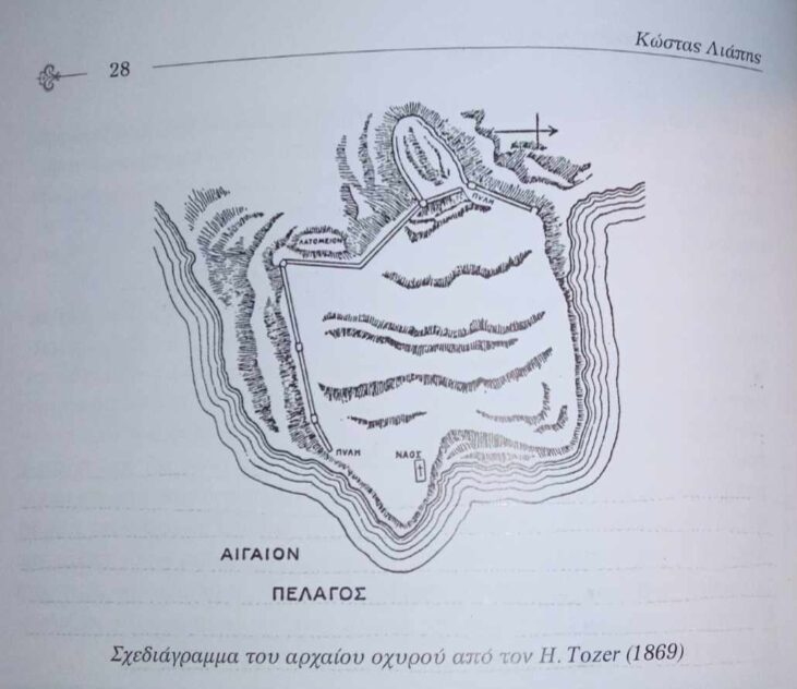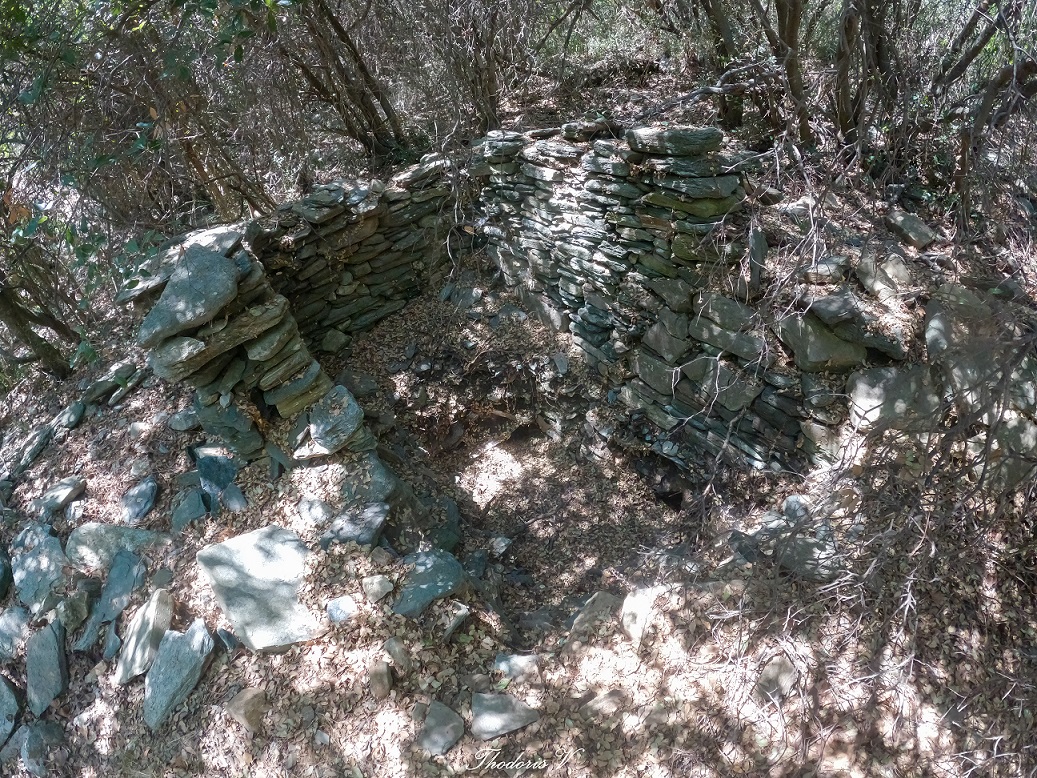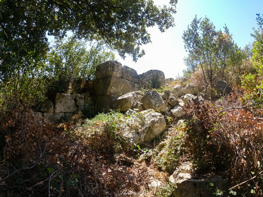 Πριν όμως φτάσετε στο εξωκλήσι, υπάρχει ένα “μονοπάτι” “καθαρισμένο” κατά μήκος του τοιχίου του κάστρου, το οποίο τοιχίο είναι μήκους σχεδόν 200μ(αυτό που ακόμα διατηρείτε δηλαδή αυτή τη στιγμή στο νότιο τμήμα του κάστρου) και ύψους σχεδόν 4μ μέγιστο, πλάτος 2,80μ και χτισμένο από κυβόλιθους, όχι απλά πέτρες. Μιλάμε δηλαδή για οχυρωματική κατασκευή(δείτε το σχεδιάγραμμα του H. Tozzer) αντίστοιχη των Μακεδόνων βασιλέων της Δημητριάδας, το οποίο τουλάχιστον μαρτυράει πως δεν μιλάμε για ένα προσωρινό οχυρό αλλά ένα τοιχίο το οποίο στην εποχή του φύλαγε στο εσωτερικό του μια πόλη…η οποία σύμφωνα με τους περισσότερους από τους νεότερους ερευνητές και λόγιους περιηγητές θεωρούν πως είναι η Αρχαία Κασταναία.