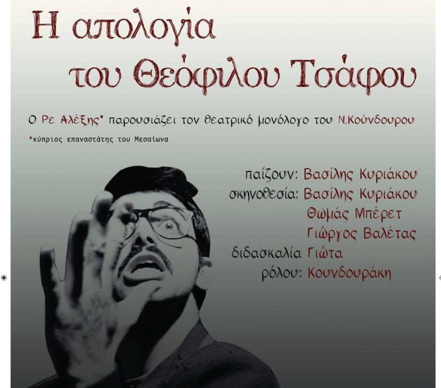 Υ.Γ. Μπορεί το θέατρο να μην μπορεί να κάνει επανάσταση όπως ο ΡΕ ΑΛΕΞΗΣ- ο Κύπριος επαναστάτης του Μεσαίωνα-, μπορεί όμως να επαναφέρει την ιστορική μνήμη και ως ένα βαθμό να συνεισφέρει στην κομμουνιστική ηθική που έχει μπει και αυτή στις ελληνικές καλένδες.