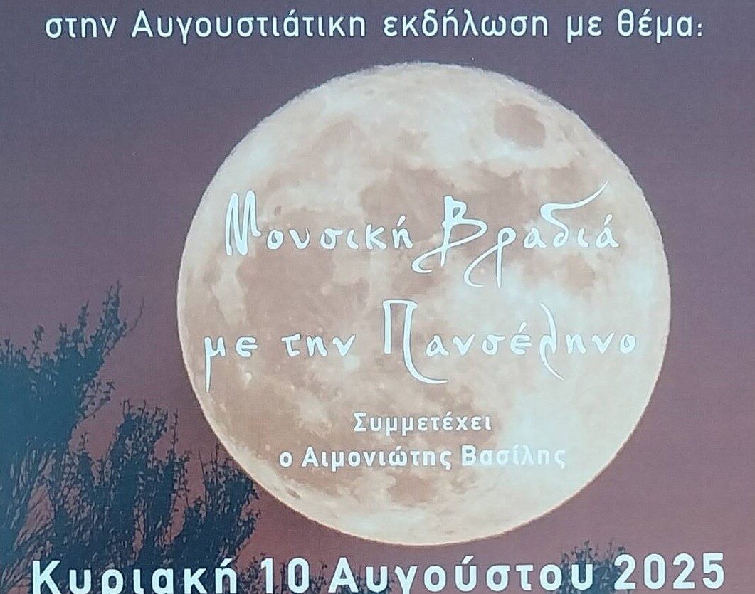 Το Υπουργείο Πολιτισμού διοργανώνει και φέτος εκδηλώσεις για την Αυγουστιάτικη Πανσέληνο, προσφέροντας ελεύθερη είσοδο για το κοινό σε επιλεγμένους αρχαιολογικούς χώρους, μουσεία, ιστορικούς τόπους και μνημεία.
