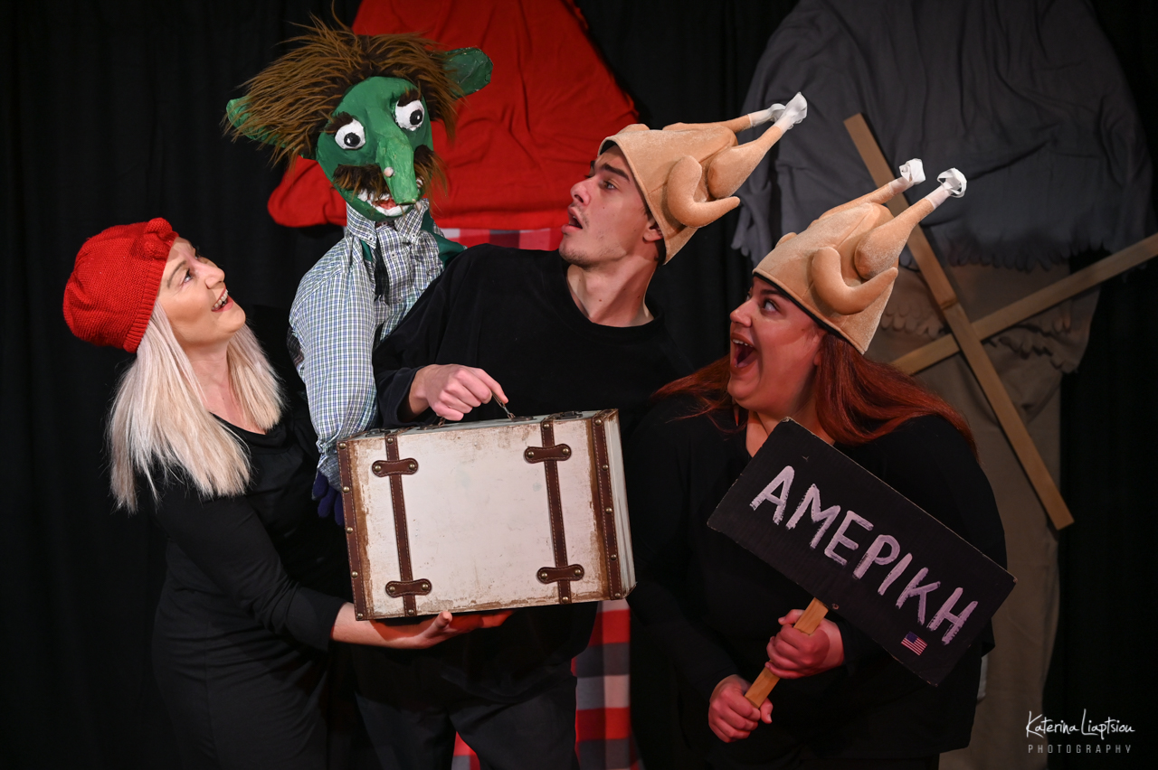 Παίζουν: Φωτεινή Καλούδη (κουκλοπαίκτρια-παιδαγωγός), Τριαντάφυλλος Ναλετάκης (χορευτής), Ρίτσα Ρούντου (παιδαγωγός)