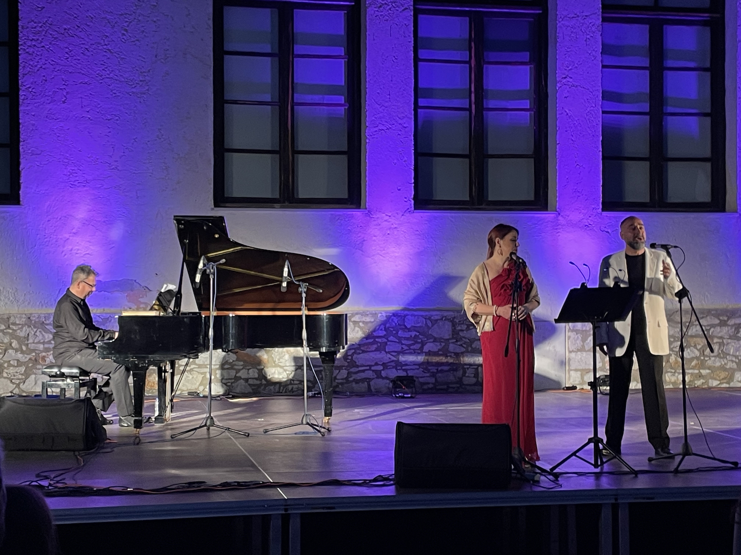 Κορωνίδα των φετινών δράσεων της Εθνικής Λυρικής Σκηνής στην Σκιάθο απετέλεσε το μοναδικό Γκαλά Λυρικού τραγουδιού, το οποίο έλαβε χώρα την Κυριακή 28 Μαΐου το απόγευμα, στο Ανοικτό Θέατρο Μπούρτζι. Οι διακεκριμένοι πρωταγωνιστές της Εθνικής Λυρικής Σκηνής, Βασιλική Καραγιάννη και Γιάννης Χριστόπουλος, πρόσφεραν στο φιλόμουσο ακροατήριο μια εξαιρετική μουσική πανδαισία. Η ταλαντούχα σοπράνο κολορατούρα Βασιλική Καραγιάννη και ο αναγνωρισμένος τενόρος Γιάννης Χριστόπουλος ερμήνευσαν με τις στεντόρειες φωνές τους άριες και ντουέτα από αγαπημένες όπερες και οπερέτες των περίφημων συνθετών Βέρντι (Τραβιάτα), Ντονιτσέττι (Λούτσια Ντι Λαμμερμούρ), Όφενμπαχ (Τα παραμύθια του Χόφμαν), Πουτσίνι (Μποέμ, Τζάννι Σκίκκι), Σακελλαρίδη (Βαφτιστικός) καθώς και τραγούδια των Λαμπελέτ (Η Ανθοστεφάνωτη), Tosti (L’ alba Separa) και Ροδίου (Για σένα ζω…). Στο πιάνο τους συνόδεψε ο περίφημος πιανίστας Φρίξος Μόρτζος.