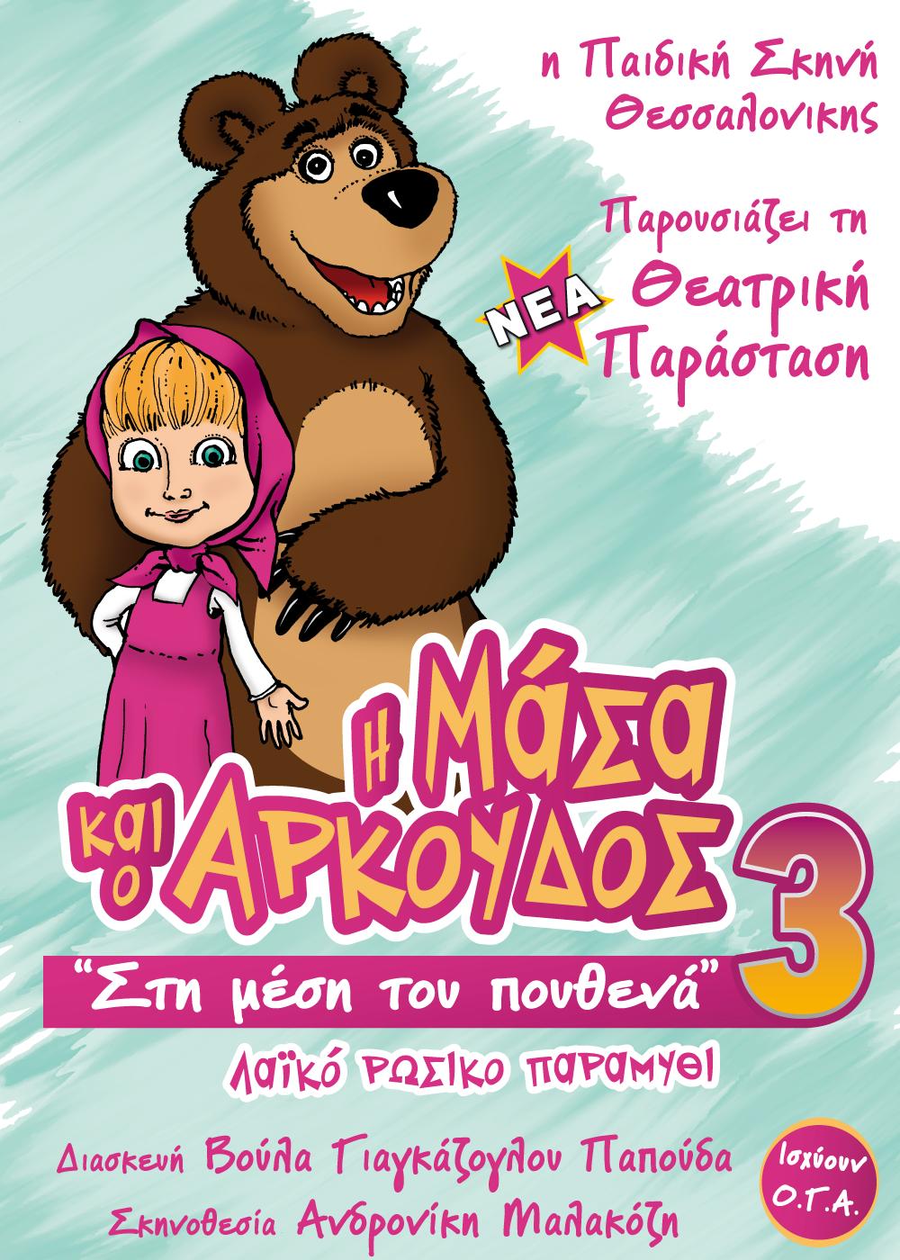 Η «Μάσα και ο Αρκούδος» στη νέα αυτή παράσταση θα παίξουν την Κυριακή 7 Νοεμβρίου στο κινηματοθέατρο Αχίλλειο στον Βόλο.