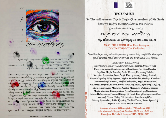 Το Ίδρυμα εικαστικών Τεχνών Τσιχριτζή και οι εκδόσεις Οδός Πανός παρουσιάζουν την συλλογική εικαστική έκθεση με τίτλο “Η ΜΑΤΙΑ ΤΟΥ ΚΑΘΕΝΟΣ”.