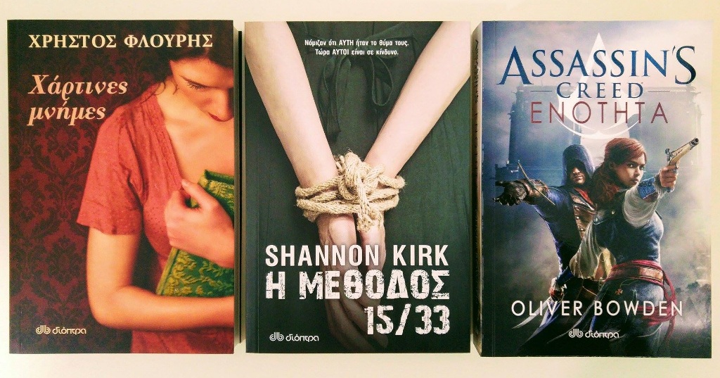 Όπως τονίζεται, «η εκδοτική μας χρονιά ξεκινάει με οκτώ νέους τίτλους και ένα νέο αστυνομικό μυθιστόρημα, η ΜΕΘΟΔΟΣ 15/33 της Kirk Shanon, το οποίο έχει αποσπάσει ιδιαίτερα καλές κριτικές. Στην κατηγορία της ελληνικής λογοτεχνίας θα βρείτε το νέο μυθιστόρημα του Χρήστου Φλουρή, ΧΑΡΤΙΝΕΣ ΜΝΗΜΕΣ. Επιπλέον κυκλοφορεί η ολοκαίνουρια περιπέτεια της σειράς ASSASSIN’S CREED, το Ε3 που είναι η συνέχεια του πολύ επιτυχημένου Ε2 καθώς και τέσσερα νέα παιδικά βιβλία.