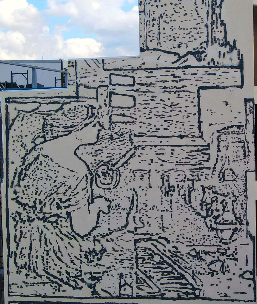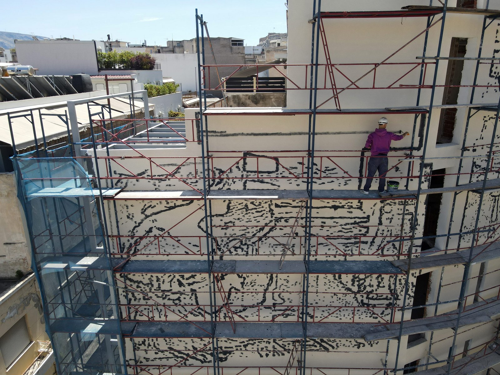 Μία από αυτές τις τολμηρές διασκευές είναι και το τελευταίο του έργο, μια μεγάλη τοιχογραφία σε ένα ανακαινισμένο κτίριο, στο οποίο πρόκειται να λειτουργήσει το κατάλυμα NEMA Suites, επί της οδού Πολυκλείτου 13, ανάμεσα στην Ευρυπίδου και στη Βύσσης, στην καρδιά του εμπορικού τριγώνου της Αθήνας. Λαμβάνοντας υπόψη του τον ιδιαίτερο χαρακτήρα της περιοχής, όπου λειτουργούσαν για δεκαετίες και λειτουργούν ακόμα πολλά υφασματάδικα και καταστήματα ειδών ραπτικής, ο ΚΕΖ ανέτρεξε σε ένα ζωγραφικό έργο με μυθολογικό θέμα, όπου η ύφανση διαδραματίζει κεντρικό ρόλο.