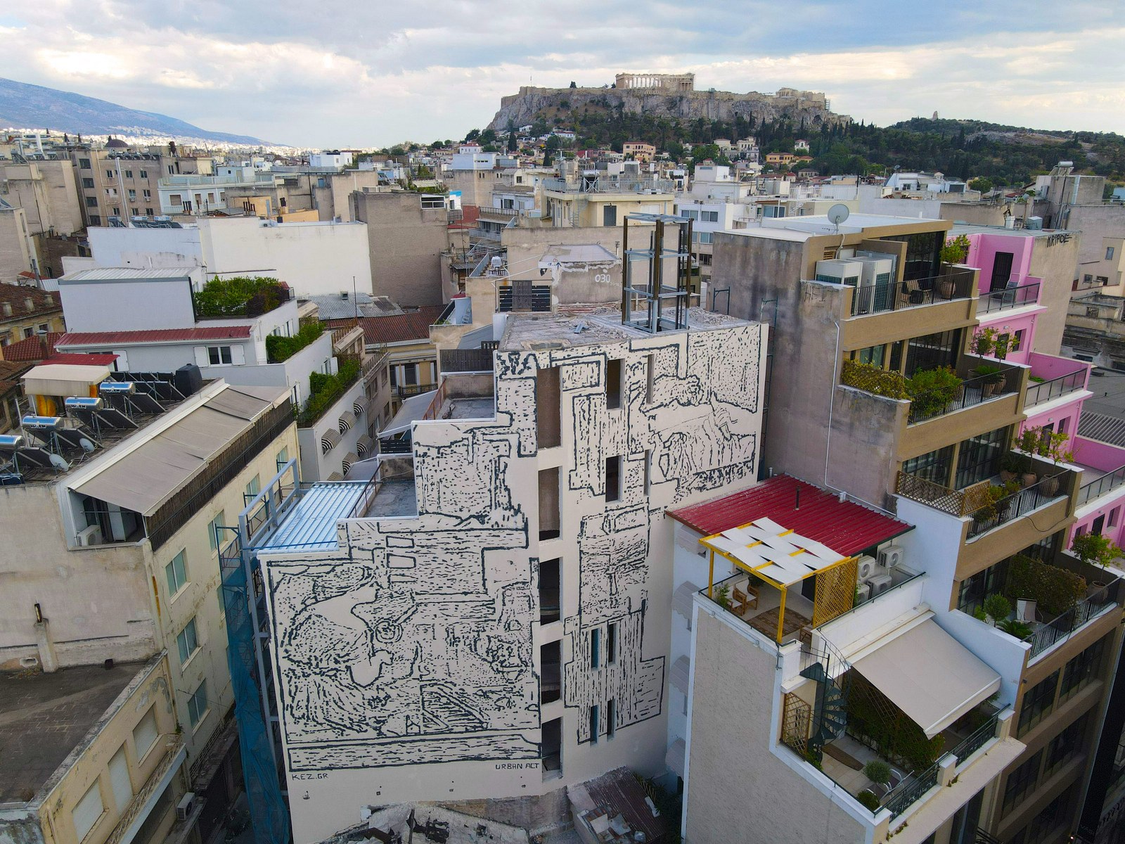 Η «Πηνελόπη» του ΚΕΖ στο κέντρο της Αθήνας! Όπως αναφέρεται απ΄την ομάδα UrbanAct, «σας καλωσορίζουμε στη νέα μεγάλη δημόσια τοιχογραφία του ΚΕΖ, στο κέντρο της Αθήνας.