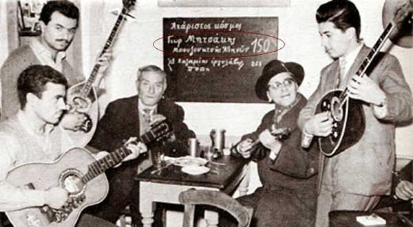 Εδώ, πριν τον πόλεμο, ήρθε κι ένας δεκαπεντάχρονος πιτσιρικάς για να μάθει μπουζούκι, ένα προσφυγόπουλο από την Πόλη, ο Γιώργος, ο γιος του Στέφανου του Μητσάκη, του ψαρά από την Άφυσσο. Σαν ήρθε ο καιρός, ο Μιλάνος έδωσε του μικρού Μητσάκη 150 δραχμές για να αγοράσει το δικό του μπουζούκι. Ο Γιωργάκης δίστασε. “Δανεικά στα δίνω, μικρέ”, είπε σοβαρά ο ταβερνιάρης. Και για να δείξει στον μικρό ότι εννοούσε αυτό που έλεγε, πήγε στον μαυροπίνακα που είχε στον τοίχο για να γράφει τα χρωστούμενα των πελατών, πήρε την κιμωλία κι έγραψε καθαρά “Γιώργος Μητσάκης 150”. Εννοείται ότι μετά τό ‘σβησε.