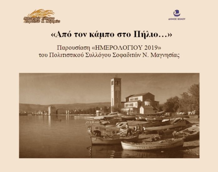 Ο Πολιτιστικός Σύλλογος Σοφαδιτών Ν. Μαγνησίας, υπό την αιγίδα του Δήμου Βόλου, παρουσιάζει και φέτος το θεματικό του Ημερολόγιο για το 2019, την Τετάρτη, 19 Δεκεμβρίου 2018 και ώρα 7.00 μ. μ. στο Δημοτικό Θέατρο του Πολιτιστικού Κέντρου Ν. Ιωνίας. Το φετινό Ημερολόγιο του Συλλόγου, με τίτλο «Από τον κάμπο στο Πήλιο…», εκδόθηκε με τη χορηγία του Δήμου Βόλου είναι αφιερωμένο στην ανά τους αιώνες μετακίνηση Σοφαδιτών στη Μαγνησία.