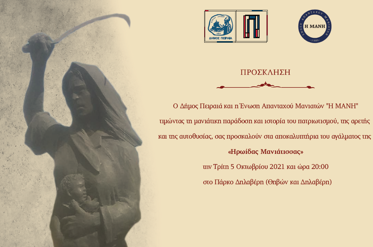 Η καταξιωμένη ερμηνεύτρια που έχει καταγωγή από το Βόλο, Βασιλική Καρακώστα, συμμετέχει στην εκδήλωση των αποκαλυπτηρίων του αγάλματος της «Ηρωίδας Μανιάτισσας», την Τρίτη 5 Οκτωβρίου και ώρα 8 το απόγευμα, στο Πάρκο Δηλαβέρη, μια διοργάνωση του Δήμου Πειραιά και της Ένωσης Απανταχού Μανιατών «Η Μάνη». Στην εκδήλωση που «τιμάται η μανιάτικη παράδοση και ιστορία του πατριωτισμού της αρετής και της αυτοθυσίας», η Βολιώτισσα Βασιλική Καρακώστα αποδίδει το Δημώδες Άσμα.