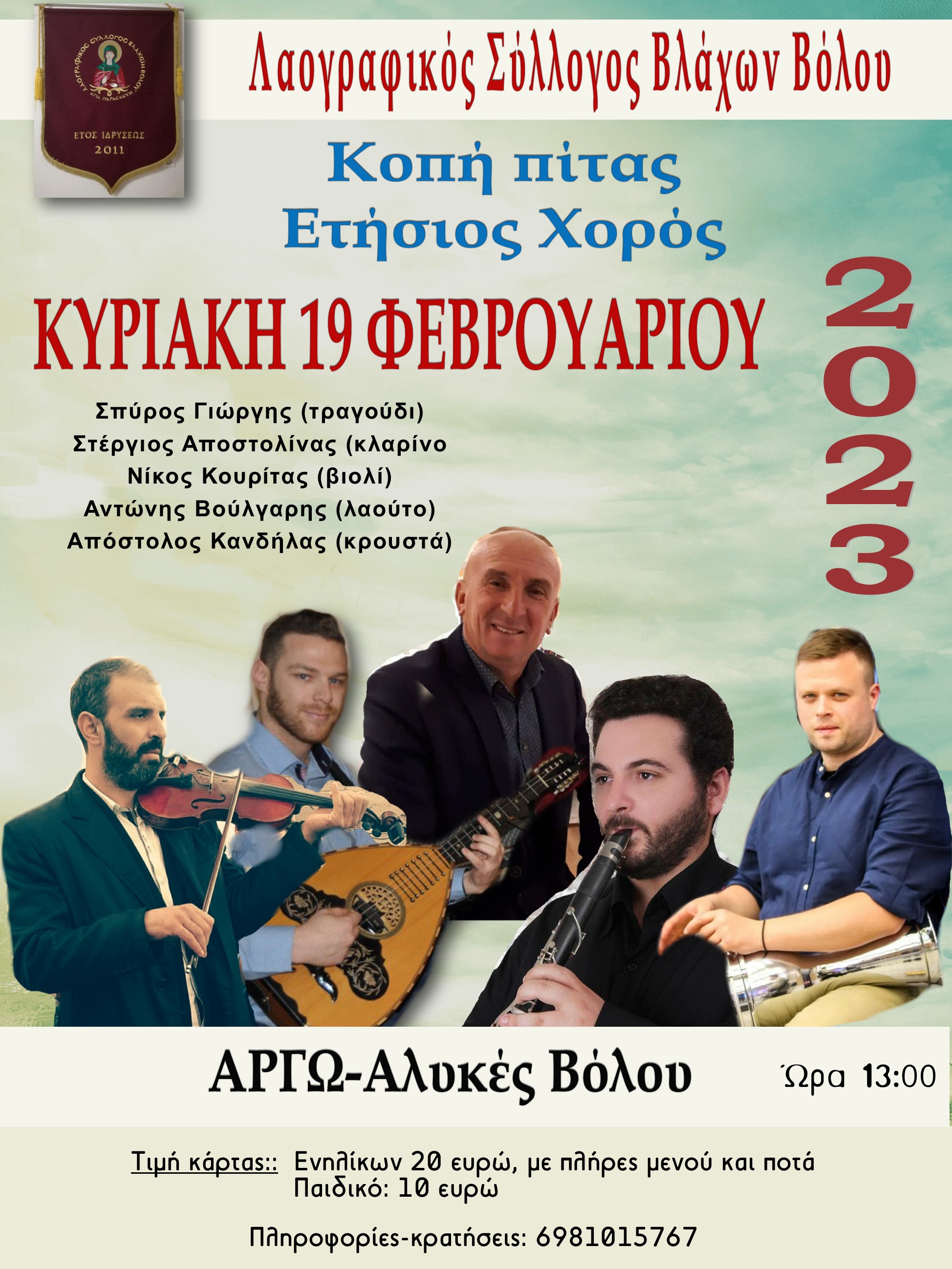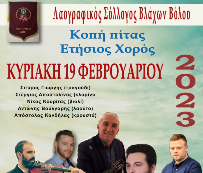 Εκδήλωση για την κοπή της πρωτοχρονιάτικης πίτας του πραγματοποιεί ο Λαογραφικός Σύλλογος Βλάχων Βόλου την Κυριακή 19 Φεβρουαρίου στο κέντρο «Αργώ» στις Αλυκές.