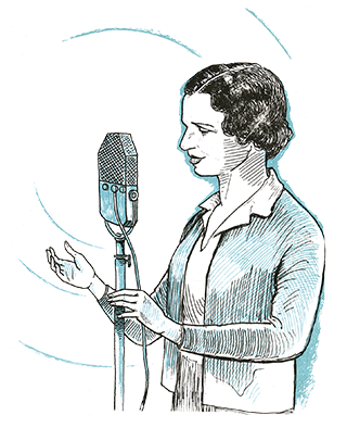 Το 1939 της γίνεται μια πρόταση να παρουσιάσει ένα από τα θεατρικά της παιδικά έργα από το ραδιόφωνο, από τον κρατικό σταθμό που αργότερα έγινε το ΕΙΡ, το Εθνικό Ίδρυμα Ραδιοφωνίας. Η επιτυχία είναι μεγάλη και στη συνέχεια της προτείνουν μια πρωινή παιδική καθημερινή εκπομπή από το ραδιόφωνο. Η Αντιγόνη δέχεται, αλλά αποφασίζει να αλλάξει το όνομά της, για να γίνει μια μορφή πιο οικεία στα παιδιά, να γίνει μια Θεία, και διαλέγει το όνομα Ελένη, Θεία Λένα, μια που το όνομα του συζύγου της ήταν Κώστας. Έτσι γίνεται η πασίγνωστη Θεία Λένα που τα παιδιά στην Ελλάδα για 25 ολόκληρα χρόνια περίμεναν μπροστά από το ραδιόφωνο, να ακούσουν κάθε πρωί τη φωνή της να τους διηγείται παραμύθια στην «Ώρα του Παιδιού». Η Θεία Λένα αργότερα γίνεται διευθύντρια όλων των παιδικών εκπομπών και χωρίζει τα προγράμματα σε τρεις ζώνες, για μικρά παιδιά, παιδιά μέσης ηλικίας και μεγάλα παιδιά. Με τη συνεργασία του συζύγου της Κώστα Κροντηρά ανεβάζει σε συνέχειες για πρώτη φορά στην Ελλάδα την Ιλιάδα και την Οδύσσεια σε ραδιοσκηνοθεσία Κώστα Κροντηρά, κείμενα Γιάννη Λιγνάδη και μουσική του Δημήτρη Λεβίδη με τη συμφωνική ορχήστρα του ΕΙΡ.