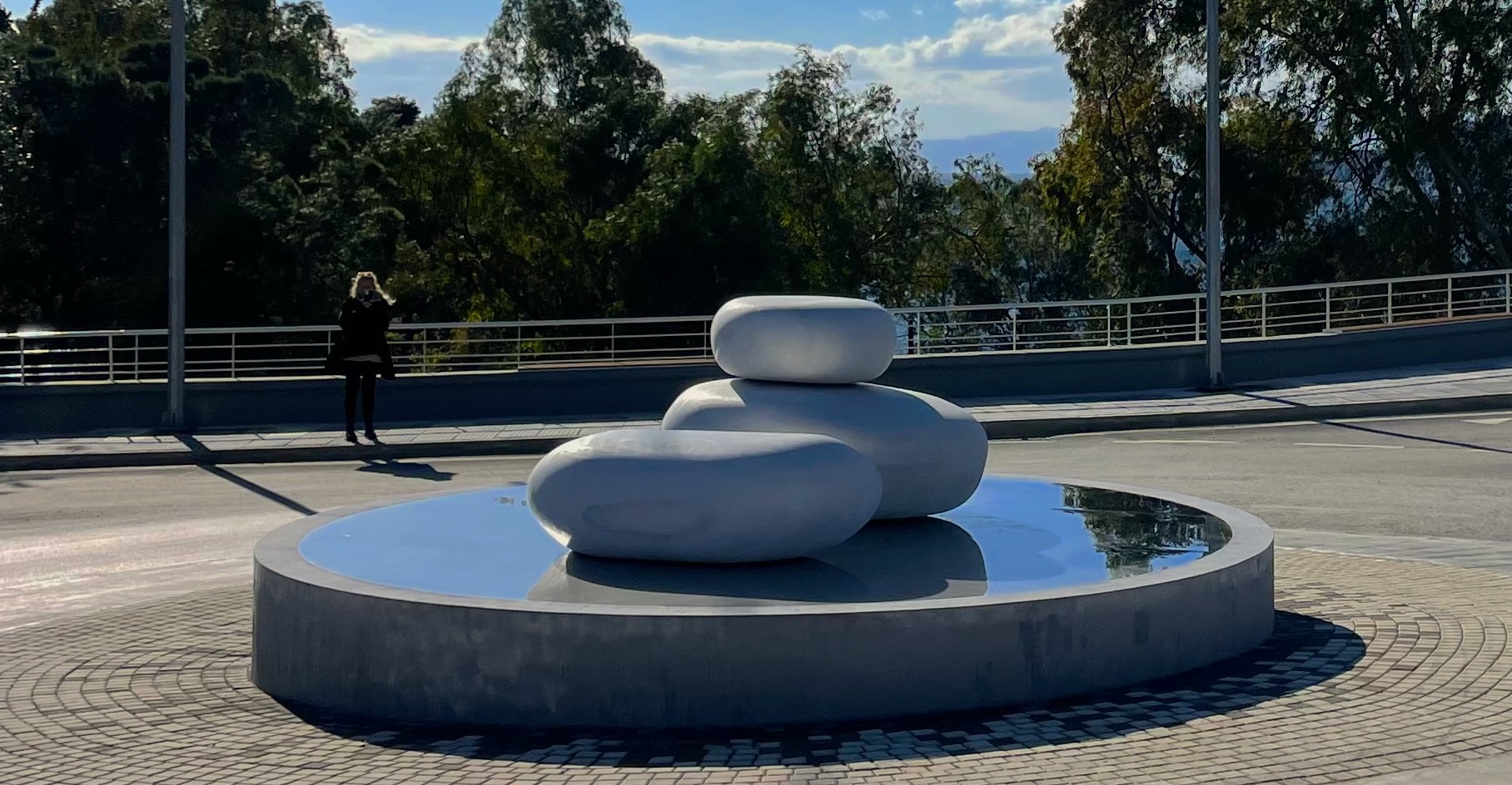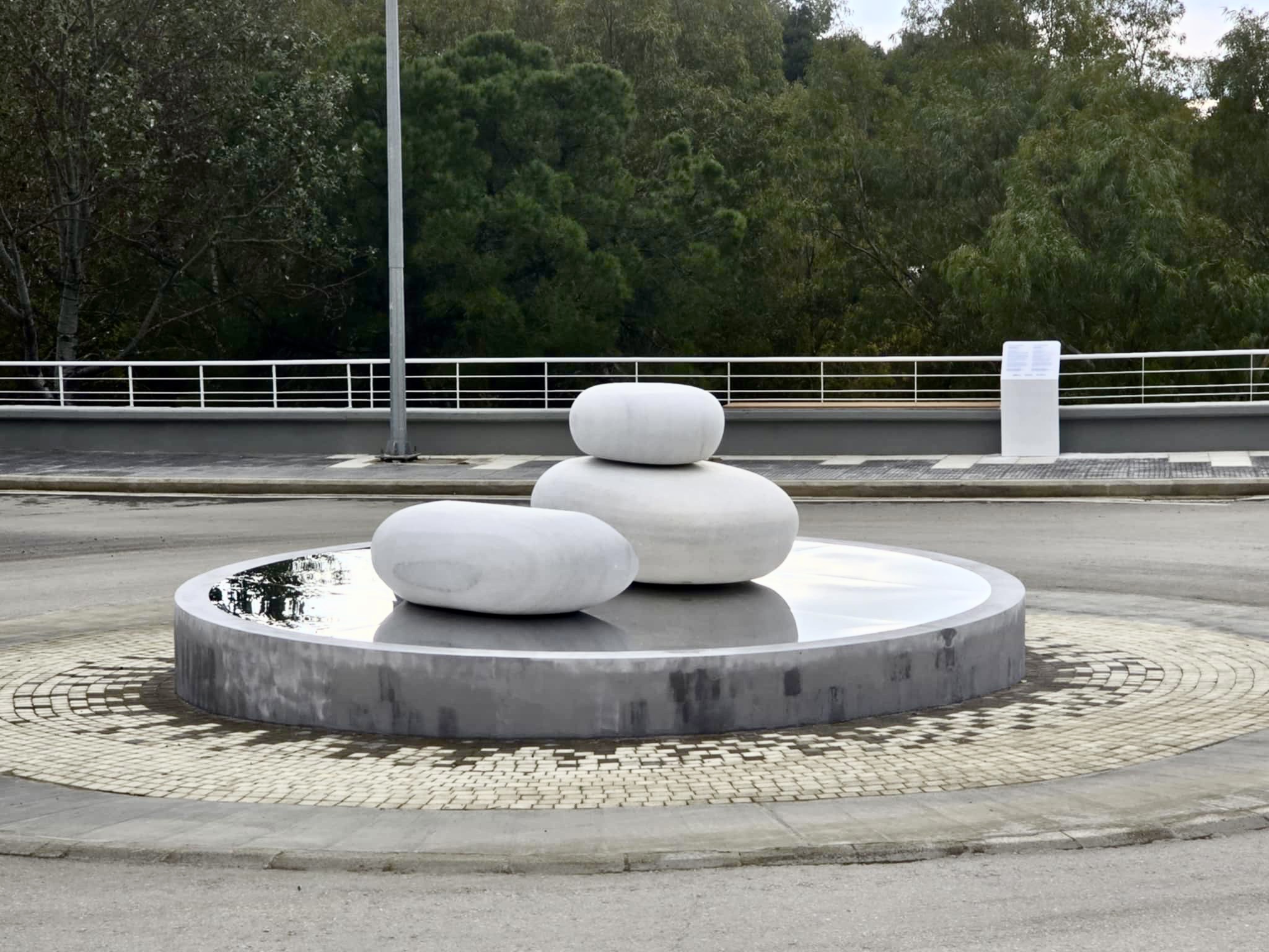 Η 15η Δεκεμβρίου του 2024, ήταν μια ξεχωριστή μέρα για τη Σκιάθο και τους Σκιαθίτες .Ήταν η μέρα που η Ακρόπολη βρέθηκε, ξανά, στη δημόσια επικαιρότητα, μέρα που εγκαινιάστηκε ο ισόπεδος κυκλικός κόμβος στο χώρο και εγκαταστάθηκε μια, μοναδικής έμπνευσης και έκφρασης, καλλιτεχνική δημιουργία της πολυβραβευμένης εικαστικού, κ. Βένιας Δημητρακοπούλου, η καλλιτεχνική παρουσία της οποίας μετράει κάμποσες χιλιάδες χιλιόμετρα , όχι μόνο στην Ελλάδα, αλλά και”εκτός ορίων”. Ο κόμβος κατασκευάστηκε, μετά από αίτημα της δημοτικής αρχής, από την Περιφέρεια Θεσσαλίας, στο πλαίσιο του έργου”Αποκατάστασης των βλαβών του επαρχιακού δικτύου Σκιάθου”, από την θεομηνία του Απριλίου του 2020 και αποτελεί καίριο σημείο της πόλης, αφού εκεί συναντώνται και διασταυρώνονται οι οδικές αρτηρίες από και προς τις Κουκουναριές. Ταυτόχρονα, λοιπόν, με την τελετή των εγκαινίων του οδικού κόμβου, τοποθετήθηκε πάνω σ’ αυτόν ένα πραγματικό”άνθος της πέτρας”, κομψό στην πάλλευκη απλότητά του και απλό στην κομψότητά του, “Τα Λαλάρια, οι πολύτιμοι λίθοι από φως και νερό”της κ. Δημητρακοπούλου, αρμονική συνύπαρξη Τέχνης και τοπίου, έργο αποκλειστικά φιλοτεχνημένο γι’ αυτό το τοπίο, το οποίο ξεκινάει σ’ αυτή την περιοχή από τα χρόνια του Παπαδιαμάντη.