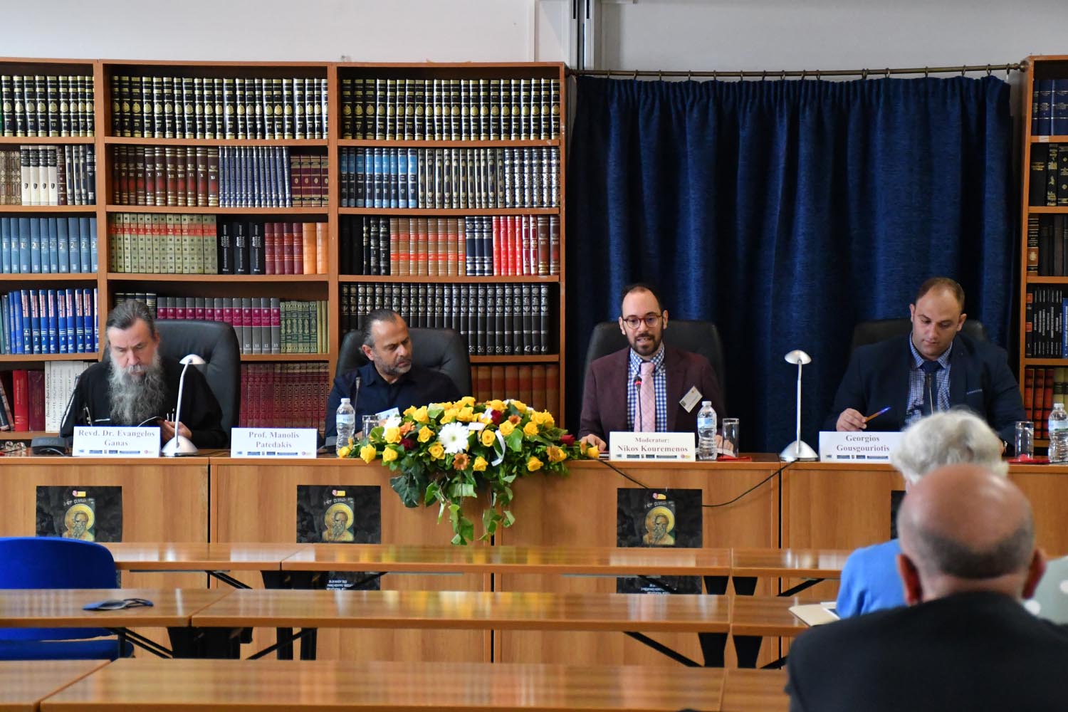 Η Μαρί-Ελέν Κονγκουρντώ (Marie-Hélène Congourdeau, Ομότιμη Ερευνήτρια, Εθνικό Κέντρο Επιστημονικής Έρευνας, Παρίσι) παρουσίασε τον ρόλο του Νέου Θεολόγου στον αστικό μοναχισμό της εποχής, αποδίδοντας στον άγιο την πρωτοβουλία για την είσοδο της ατομικής και εσωτερικής προσευχής στην παράδοση του κοινοβίου. Ο Δημήτρης Μόσχος (Καθηγητής, Τμήμα Θεολογίας, ΕΚΠΑ) αφ’ ετέρου, συγκρίνοντας τη σχέση του Συμεών με τα αρχαία μοναστικά πρότυπα, προβληματίστηκε για τα ερωτήματα που κατά περιόδους θέτει το μοναστικό κίνημα, αναφορικά προς τα ιδεώδη του. Μια σύγκριση της εμπειρίας της θέωσης μεταξύ του Συμεών του Νέου Θεολόγου και του Γρηγορίου Παλαμά επιχείρησε ο π. Αλέξανδρος Χουλιαράς (Εντεταλμένος Διδάσκων, Τμήμα Κοινωνικής Θεολογίας και Θρησκειολογίας, ΕΚΠΑ), ενώ ο π. Βασίλειος Γκαβρίλοβιτς (Basil Gavrilovic, Υπ. Δρ. Θεολογίας) συνέκρινε τη σκέψη του Νέου Θεολόγου με τον Γρηγόριο Νύσσης, σε σχέση με τις αντιλήψεις τους για την ατέλεστη εσχατολογική προκοπή του ανθρώπου. Ο Αχιλλέας Δελλόπουλος (Δρ. Θεολογίας, Μεταδιδακτορικός Ερευνητής Τμήματος Θεολογίας ΕΚΠΑ) παρουσίασε τις «πνευματικές αισθήσεις» ως απαραίτητη προϋπόθεση της θέωσης αλλά και ως ενοποιό στοιχείο της ανθρωπολογίας. Την ολοποιητική και ανακεφαλαιωτική διάσταση της σκέψης του αγίου Συμεών ανέδειξε ο Βασίλειος Τσίγκος (Καθηγητής, Τμήμα Κοινωνικής Θεολογίας και Χριστιανικού Πολιτισμού, ΑΠΘ), ενώ η επισήμανση της διαλεκτικής ελευθερίας και αναγκαιότητας ως παράγοντα υπέρβασης μιας συμβατικής και θεσμοποιημένης άσκησης και πνευματικότητας από τον Δημήτρη Ουλή (Εντεταλμένο Διδάσκοντα, Τμήμα Κοινωνικής Θεολογίας και Θρησκειολογίας, ΕΚΠΑ), φανέρωσε τη δυναμική της συμεωνικής σκέψης.
