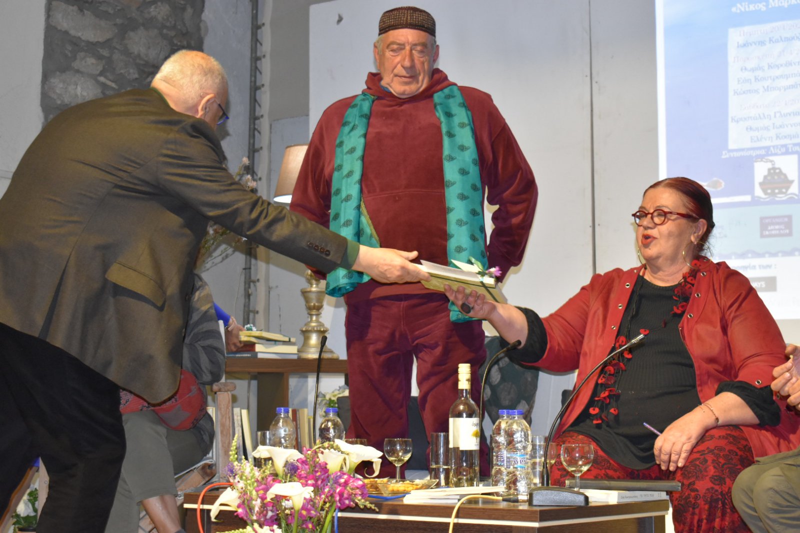Ακόμη ευχαριστεί όλους όσοι βοήθησαν να πραγματοποιηθεί η συγκεκριμένη εκδήλωση και ιδιαιτέρως τους χορηγούς τη Ναυτιλιακή Εταιρεία Hellenic Seaways και τα Ξενοδοχεία Άκτη, Ανέλλη, Ρεγγίνα και Ρήγας, καθώς και το βιβλιοπωλείο Χωχαρούπα για τη συμμετοχή του.