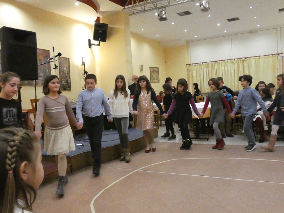 Η εκδήλωση ξεκίνησε με την ευλογία της πίτας από τους πατέρες Αθανάσιο και Γεώργιο και το σύντομο χαιρετισμό της προέδρου κ. Βαλασίας Πετρίδη. Στη συνέχεια παρουσιάστηκε η παιδική και εφηβική-γυναικεία χορωδία, υπό την καθοδήγηση της μαέστρου κ. Χαράς Σταυράκη-Αναγνώστου. Τη σκυτάλη πήρε το νηπιακό χορευτικό, με χοροδιδάσκαλο την κ.Θάλεια Μπούτλα και στη συνέχεια παρουσιάστηκαν τα τμήματα του παιδικού-εφηβικού-ενηλίκων, με χοροδιδάσκαλο τον κ. Θανάση Μπέα.