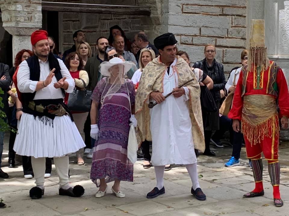 Άνδρες κάθε ηλικίας μεταμφιεσμένοι, με το πρόσωπο καλυμμένο χορεύουν κυκλικά έχοντας στη μέση τον «Μάη», έναν νέο καταστόλιστο με λουλούδια. Το σώμα του είναι σκεπασμένο με κισσούς, δάφνες, αγιοκλήματα και τριαντάφυλλα, στο κεφάλι φορά στεφάνι από πολύχρωμα λουλούδια και κρατά το «μαγιόξυλο», σκήπτρο φορτωμένο με λουλούδια και καρπούς, σύμβολο της ανανέωσης της φύσης και της ζωής. Γύρω του χορεύουν τα ζεϊμπέκια, με κόκκινα κεντημένα γιλέκα και σαλβάρια βράκες με φαρδιά ζωνάρια και ψηλά φέσια με φούντες μακριές. Υπάρχει και η νύφη, που είναι άντρας, ο Χότζας με κελεμπία και σαρίκι, ο γύφτος και η γύφτισσα με καρβουνιασμένα πρόσωπα, ενώ δεν λείπει και ο αρκουδιάρης με την αρκούδα που είναι και αυτοί άντρες μεταμφιεσμένοι.