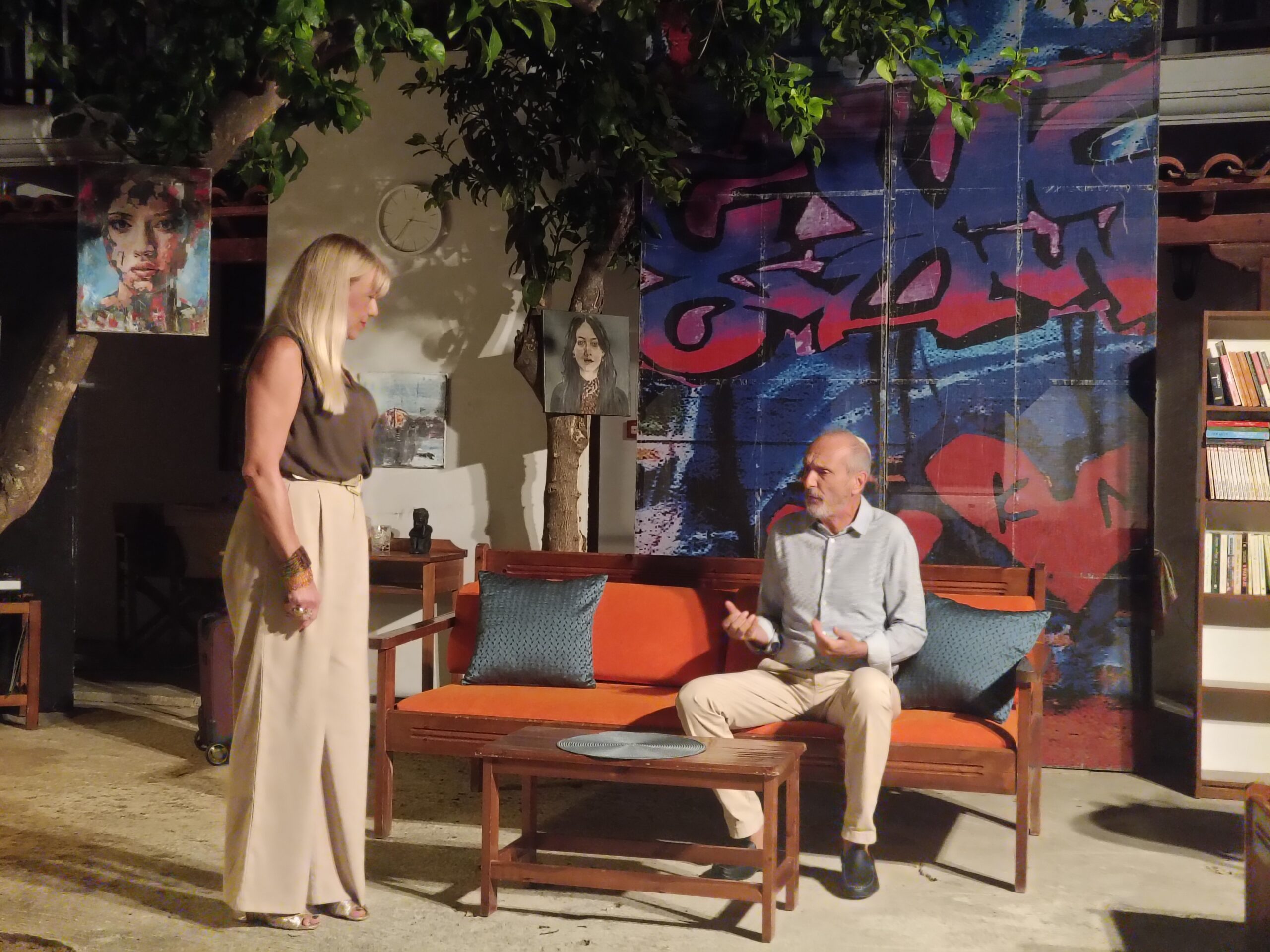 Κάτω από τον έναστρο ουρανό, στον υπαίθριο χώρο της Ένωσης Συντακτών Θεσσαλίας, Στερεάς Ελλάδας και Εύβοιας, οι θεατές βυθίστηκαν σε έναν κόσμο όπου η αγάπη και το ψέμα συγκρούονταν ασταμάτητα. Επί 80 λεπτά, δύο σύζυγοι —παγιδευμένοι σε παιχνίδια μνήμης, αμφιβολίας και ενοχής— ξετύλιξαν μπροστά μας ένα σκηνικό άλλοτε τρυφερό, άλλοτε σκοτεινό, μα πάντα γοητευτικό.