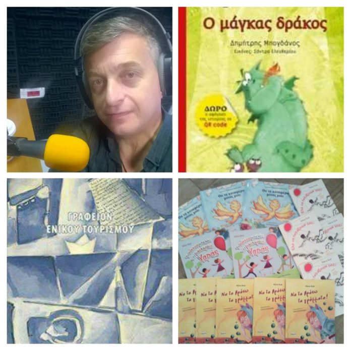“Μιλάμε για το βιβλίο» και φέτος, με τον συγγραφέα Διονύση Λεϊμονή, ο οποίος παρουσιάζει κάθε εβδομάδα συγγραφείς και βιβλία που ξεχωρίζουν. Είτε είστε λάτρεις των μυθιστορημάτων, των δοκιμίων, της λαογραφίας και όποιου άλλου είδους λογοτεχνίας ενηλίκων και παιδικής, θα ακούσετε σίγουρα κάτι ενδιαφέρον που θα σας κεντρίσει την προσοχή… Σήμερα Σάββατο 11 Φεβρουαρίου θα συνομιλήσουμε τηλεφωνικά με τον συγγραφέα Δημήτρη Μπογδάνο για το παιδικό του βιβλίο «Ο μάγκας δράκος», που κυκλοφόρησε πρόσφατα από τις Εκδόσεις Μεταίχμιο, (εικόνες: Σάντρα Ελευθερίου) με τη συγγραφέα Κάτια Πινό για τα παιδικά της βιβλία «Να τα βράσω τα γράμματα»(Εκδόσεις Παρρησία), ΄Ελα να πετάξουμε μαζί»(Εκδόσεις Βεργίνα), «Το κόκκινο μπαλόνι της μασκαρούς Χαράς»(Εκδόσεις Παρρησία), και «Θα τα καταφέρω μόνος μου;»(Εκδόσεις κόκκινη κλωστή δεμένη), ενώ στο τελευταίο ημίωρο θα συνομιλήσουμε τηλεφωνικά με τον εκπαιδευτικό- ποιητή Γιάννη Στρούμπα ξεφυλλίζοντας την ποιητική του συλλογή «Γραφείον Ενικού Τουρισμού», που κυκλοφορεί από τις Εκδόσεις Καλλιγράφος αλλά και με την ΄Εφορο του Κύκλου του Ελληνικού Παιδικού Βιβλίου- ελληνικού τμήματος του IBBY, κυρία Πάττυ Παπαδήμου με την ευκαιρία της διοργάνωσης στη Λάρισα στις 17 Φεβρουαρίου εκδήλωσης με αφορμή την αφίσα που ετοιμάζει κάθε χρόνο το Ελληνικό Τμήμα της ΙΒΒΥ με τίτλους βιβλίων παιδικής λογοτεχνίας σχετικά με το φαινόμενο του σχολικού εκφοβισμού και τα συνθήματα που έγραψαν συγγραφείς-μέλη για το θέμα “Βία-ανεκτικότητα”. Για όσους θέλουν να επικοινωνήσουν με την εκπομπή, μπορούν να καλέσουν στο 24210-62024. Το ίδιο τηλέφωνο ισχύει και για τις κληρώσεις βιβλίων που γίνονται κατά τη διάρκειά της με δώρο αντίτυπα των βιβλίων που παρουσιάζονται.