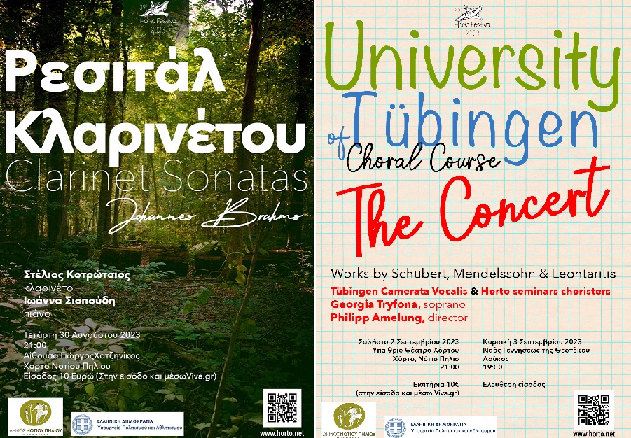 Το Σάββατο στο Υπαίθριο Θέατρο Χόρτου στις 21:00 θα λάβει χώρα συναυλία με Χορωδιακή μουσική από την Αναγέννηση και τον Ρομαντισμό από τη χορωδία του Πανεπιστημίου του Tübingen και τραγουδιστές που συμμετείχαν στα σεμινάρια του Χόρτου. Ειδικότερα, θα λάβουν μέρος οι Γεωργία Τρύφωνα, σοπράνο, Ιωάννα Σιοπούδη, πιάνο και Philipp Amelung, διεύθυνση.
