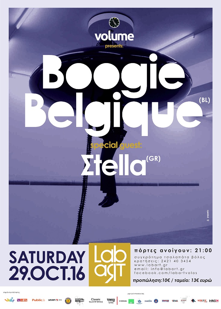 To Volume festival παρουσιάζει μια μοναδική βραδιά Showcase στο Βόλο… Πιο συγκεκριμένα, το Lab Art σε συνεργασία με το Volume Fest παρουσιάζουν το Σάββατο 29 Οκτωβρίου την επιστροφή του outfit του ταλαντούχου παραγωγού Boogie Belgique, στην περιοδεία για το νέο του album “Volta”. Ένα μοναδικό live show με visuals, συνοδευόμενος από το εκπληκτικό συγκρότημα του. Στην ίδια βραδιά, η μονάδικη Σtella , το talk of the town από την Αθήνα για πρώτη φορά στη σκηνη του Lab art!