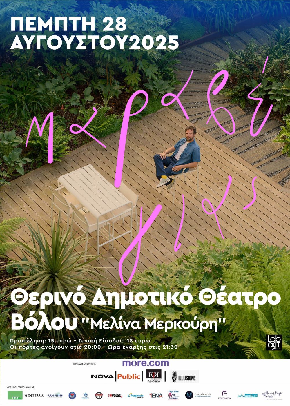 Ακυρώθηκε η εμφάνιση του Κωστή Μαραβέγια στο Θερινό Δημοτικό Θέατρο Βόλου Μελίνα Μερκούρη που ήταν προγραμματισμένη για την Πέμπτη 28 Αυγούστου, λόγω ανυπέρβλητων δυσκολιών. Επιστροφή χρημάτων για τα εισιτήρια: Από φυσικά σημεία προπώλησης (Κεχαΐδης & Illusion – Βόλος):