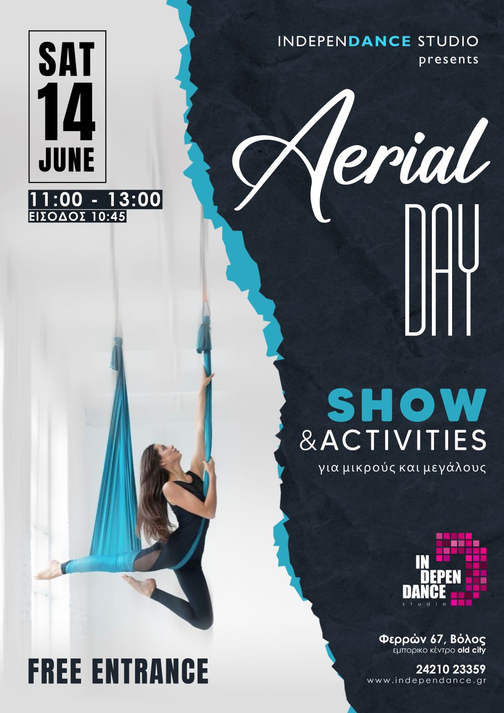 Θα μπορούν να παρακολουθήσουν τη δουλειά των εναέριων τμημάτων με χορογραφίες από τα παιδικά, εφηβικά και ενήλικα τμήματα Aerial ενώ μετά θα υπάρχει χρόνος για δράσεις και παιχνίδια στην αιώρα για όσα μικρά και μεγάλα παιδιά θέλουν να δοκιμάσουν. Οι δασκάλες της σχολής θα είναι διαθέσιμες για όποιον θέλει να έχει την πρώτη επαφή του με την αιώρα.