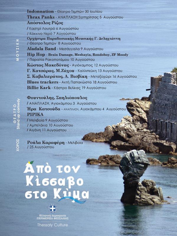 Κανονικά συνεχίζονται οι πολιτιστικές εκδηλώσεις της Περιφέρειας Θεσσαλίας τόσο στο Φεστιβάλ Από τον Κίσσαβο στο Κύμα όσο και στο Φεστιβάλ Λιμνών.