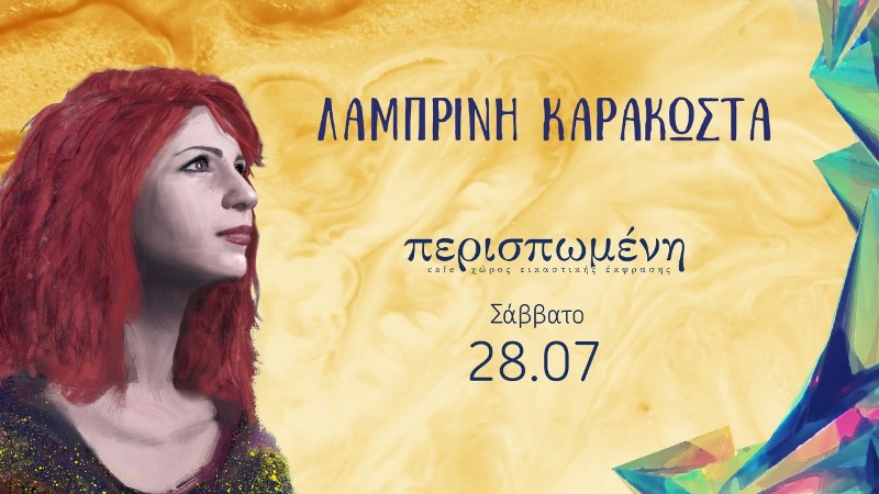 Έχοντας ολοκληρώσει την τετραετή συνεργασία της με τον Σωκράτη Μάλαμα όπου κέρδισε τις εντυπώσεις ως ερμηνεύτρια, η Λαμπρινή Καρακώστα, μας συστήνεται πλέον και ως δημιουργός, λίγο πριν τη κυκλοφορία του πρώτου προσωπικού της άλμπουμ. Με την κλασσική της κιθάρα και το μεταλόφωνο της, πότε μας συγκινεί με την ευαισθησία της και πότε με τα κρουστά της, μας ξεσηκώνει. Απόψε Σάββατο 28 Ιουλίου στις 10.15 στο καφέ -χώρο εικαστικής έκφρασης «Περισπωμένη» .Η αίθουσα κλιματίζεται, είσοδος 3 ευρώ.