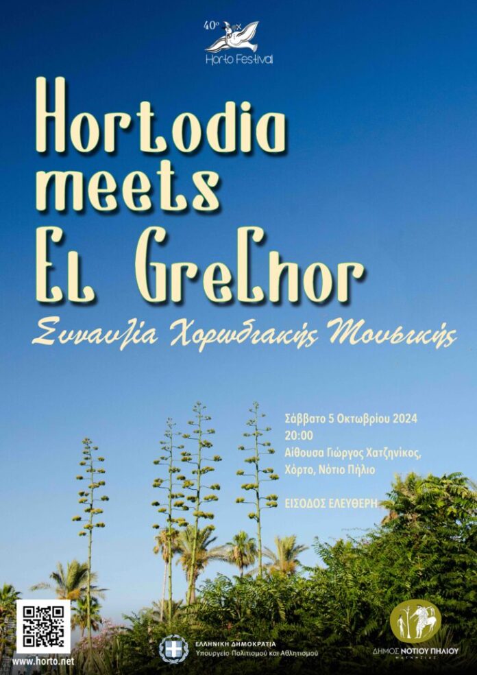 Στη δεύτερη επίσκεψή τους στο Νότιο Πήλιο ως ομάδα, η El GreChor και ο Τάσος Τατάρογλου συναντούν τη Χορτωδία για μια χορωδιακή βραδιά με μουσική από διαφορετικές παραδόσεις και είδη. Η συνάντηση αυτή θα γίνει το Σάββατο 5 Οκτωβρίου στις 8 το βράδυ στην αίθουσα Γιώργος Χατζηνίκος.