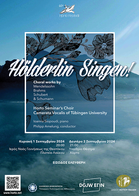 Για τρίτη συνεχόμενη χρονιά το φεστιβάλ Χόρτο φιλοξενεί το χορωδιακό 10ήμερο με την Camerata Vocalis του πανεπιστήμιου του Tübingen και τη συμμετοχή χορωδών από την Ελλάδα και άλλες χώρες. Υπό την καθοδήγηση του μαέστρου Philipp Amelung και την πιανιστική συνοδεία της Ιωάννας Σιοπούδη το 50μελές σύνολο θα παρουσιάσει δύο συναυλίες μαγευτικής χορωδιακής μουσικής στα χωριά του Λαύκου και του Χόρτου την 1 και 2 Σεπτεμβρίου αντίστοιχα.