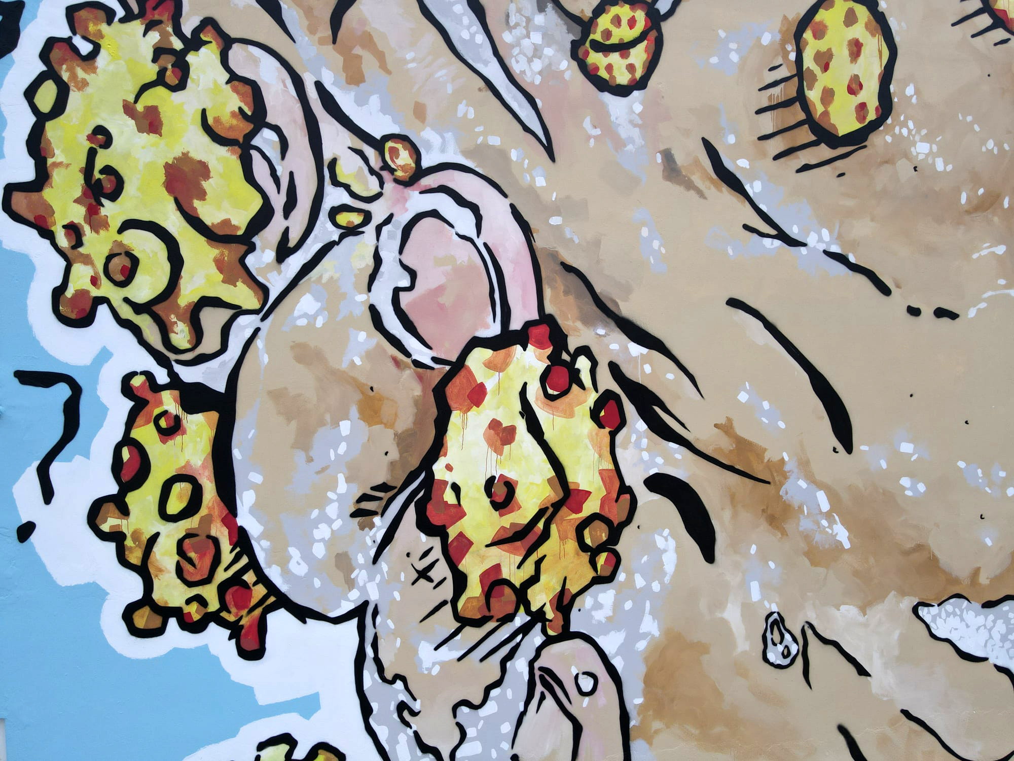 Η θεματική της τοιχογραφίας που υλοποίησε ο Same84, αυτή τη φορά εστιάζει στις λοιμώξεις και εν γένει στους ιούς και συμβολικά στην καθημερινή καθαριότητα με το πλύσιμο των χεριών μας, μια συμβολική κίνηση προστασίας και πρόληψης απέναντι στους ιούς.