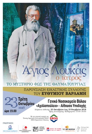 Το γεγονός της έκθεσης, «ΑΓΙΟΣ ΛΟΥΚΑΣ ΤΟ ΜΥΣΤΗΡΙΟ ΦΩΣ ΤΗΣ ΘΑΥΜΑΤΟΥΡΓΙΑΣ» του αείμνηστου Έλληνα καλλιτέχνη της διασποράς Ευθυμίου Βαρλάμη, στο Γενικό Νοσοκομείο Βόλου, φιλοδοξεί να γίνει μία είδηση για όλη την Ελλάδα.