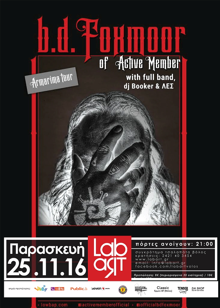 Ο BD Foxmoor στον Bόλο με την “Armarima” του! Η ψυχή των “Active Member” συνεχίζει να δημιουργεί με καινούργιο δίσκο στις αποσκευές του και FULL BAND σε μια μοναδική εμφάνιση! “…είμαστε στου δρόμου τα μισά κι όσο κι αν τα σκυλιά γαυγίζουν, το καραβάνι περνά…”