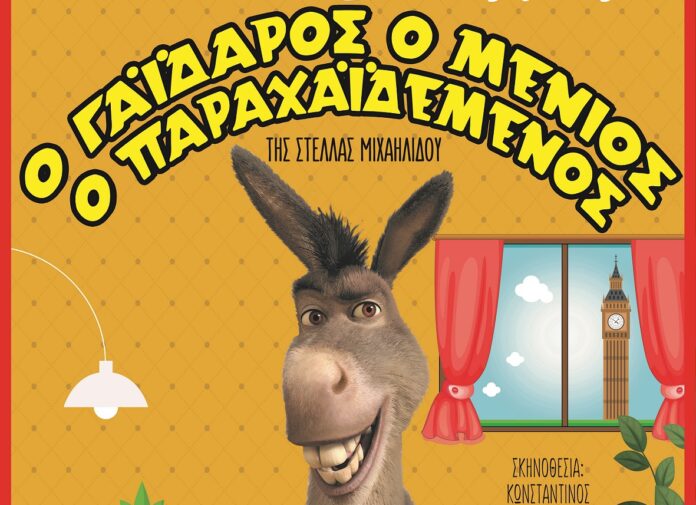 « Ο Γάιδαρος ο Μένιος ο Παραχαίδεμένος » σε μια σπιρτόζικη διασκευή με μουσική, ρυθμό και εικόνες παρμένες από την οικογενειακή καθημερινότητα . Μια κωμική θεατρική απόδοση του παραμυθιού που, φυσικά, δεν θα μπορούσε παρά να μείνει απόλυτα πιστή στα ουσιώδη νοήματα του συγγραφέα. Τα εντυπωσιακά σκηνικά και τα ευφάνταστα κοστούμια θα σας ταξιδέψουν με μαγικό τρόπο στην εξέλιξη του παραμυθιού.