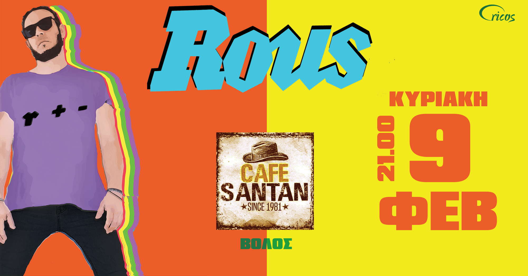Διανύοντας την τέταρτη χρονιά από μια σειρά άκρως επιτυχημένων εμφανίσεων σε όλη τη χώρα, ο Γιώργος Ρους έρχεται στον Βόλο και στο Cafe Santan, την Κυριακή 9 Φεβρουαρίου, για ένα μοναδικό μουσικό story telling, που θα μείνει αξέχαστο! Πολυτάλαντος και ρομαντικός, γεμίζει κάθε φορά τη σκηνή με θετική ενέργεια, φέρνοντας το κοινό όχι μόνο κοντά, αλλά κάνοντας το να μετέχει κι αυτό σε μια μυσταγωγική μουσική εμπειρία. Η έμπνευση έρχεται μέσα από εικόνες της καθημερινότητας και κάθε του τραγούδι είναι μια ιστορία με ήρωες και πάθη που κεντρίζουν το ενδιαφέρον. Το αποτέλεσμα κάθε παράστασης είναι ένα μεγάλο «μαζί».Έχει συνεργαστεί με σπουδαία ονόματα του ελληνικού τραγουδιού, τόσο στη σκηνή, όσο και ως τραγουδοποιός, όπως, Χάρις Αλεξίου, Γιάννης Κότσιρας, Χρήστος Θηβαίος κ.ά.Info:ROUSlive @ CafeSantan, Κυριακή 9/2/25, Ώρα 21:00. Γενική είσοδος: 12 €. Προπώληση: Cafe Santan, Εργατικού Κέντρου 12, Βόλος