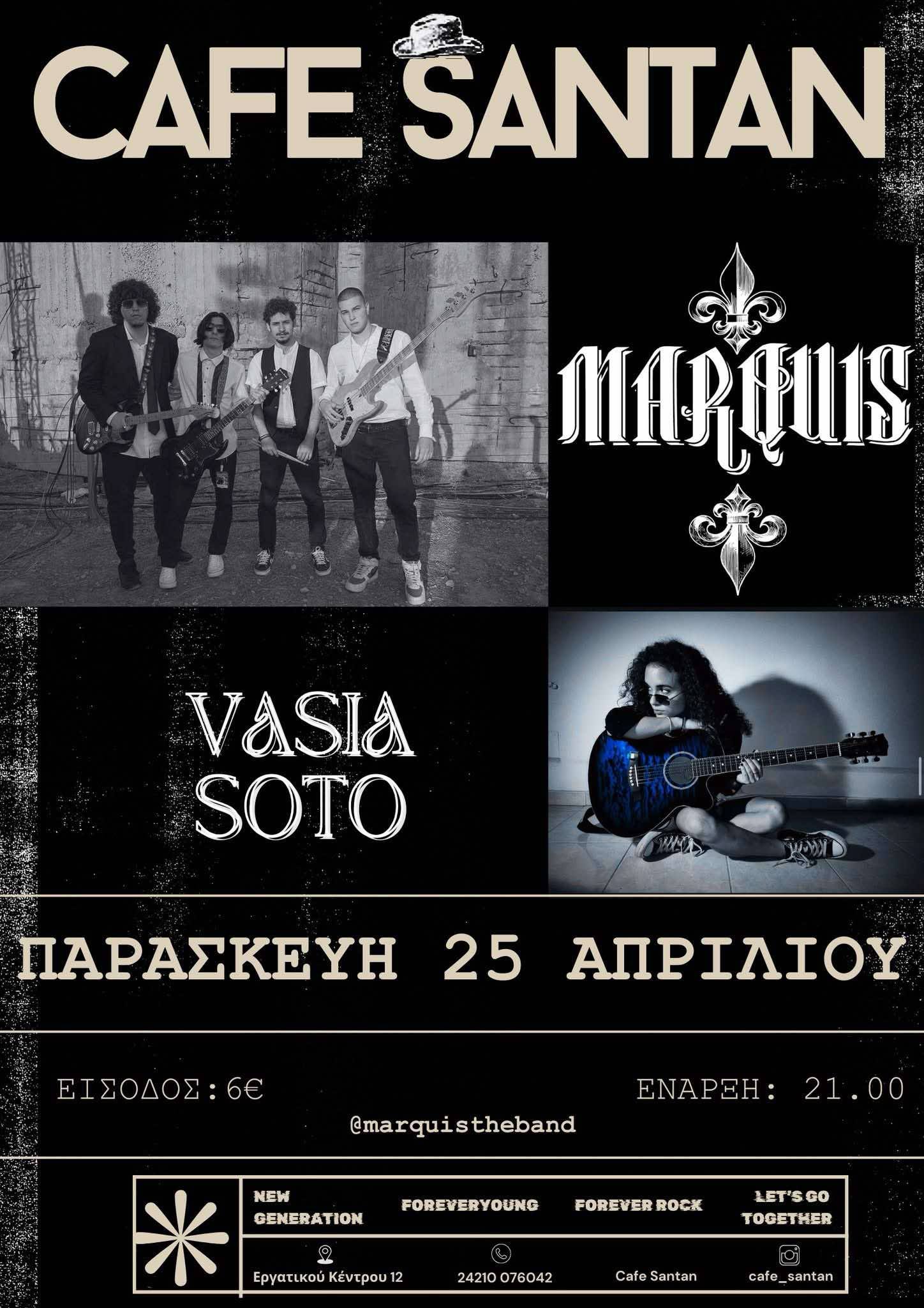 Την Παρασκευή 25 Απριλίου η ροκ μπάντα Marquis σε μια μοναδική μουσική συνάντηση με την εξαιρετική ερμηνεύτρια Vasia Soto στη μουσική σκηνή του «Καφέ Σαντάν».